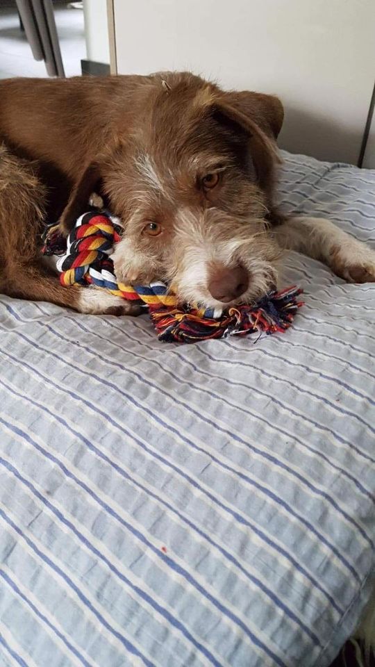 Η σκυλίτσα εγκαταλείφθηκε τον Οκτώβριο του 2019, ούτε ενός έτους, στην αυλή του Γυμνασίου στο Σκουτάρι Σερρών. Βρήκε φροντίδα από τους καθηγητές και τους μαθητές του σχολείου, όμως μια μέρα χτυπήθηκε από διερχόμενο αυτοκίνητο. Οι εθελοντές του ΦΟΣ που την ανέλαβαν έκαναν μεγάλες προσπάθειες για να τη σώσουν. Και τα κατάφεραν.