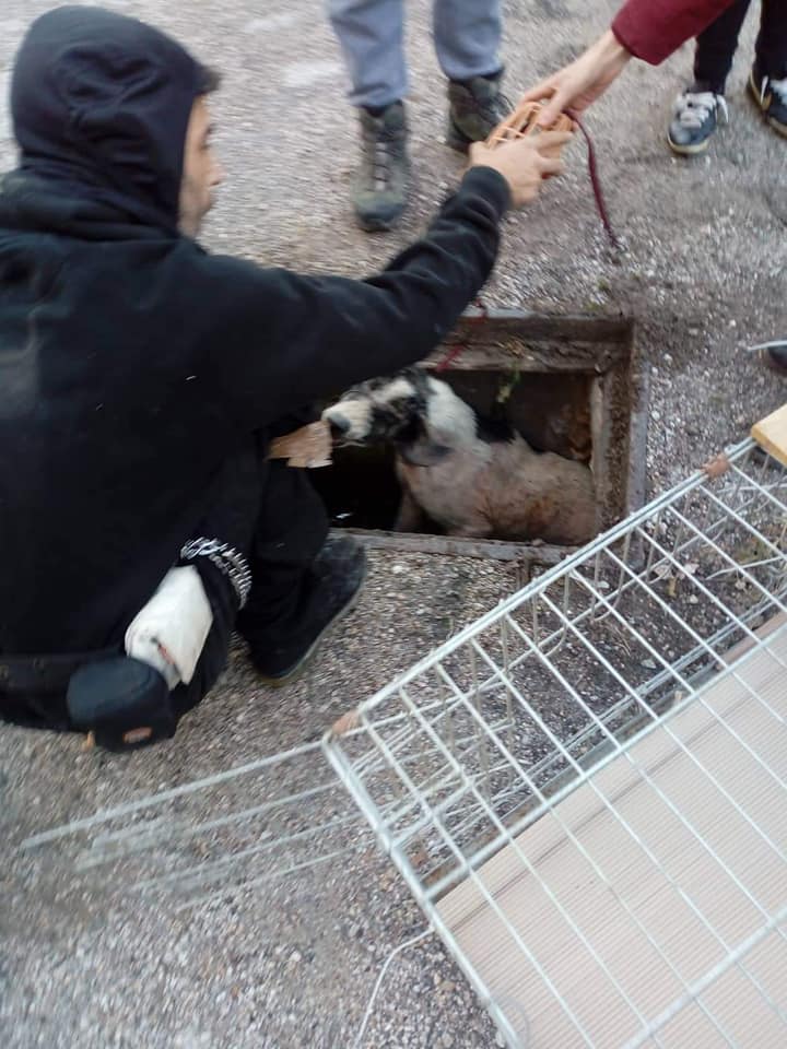 Με προσεκτικές κινήσεις ο σκύλος οδηγήθηκε πάνω από το τετράγωνο καπάκι του φρεατίου στο βάθος του αγωγού όπου στη συνέχεια οι εθελοντές το ασφάλισαν με θηλειά και άνοιξαν το καπάκι για να το βγάλουν στην επιφάνεια. Η επιχείρηση τελικά στέφθηκε με επιτυχία και το σκυλάκι οδηγήθηκε στο κτηνιατρείο του κυρίου Κτενά για να του παρασχεθούν οι πρώτες βοήθειες.