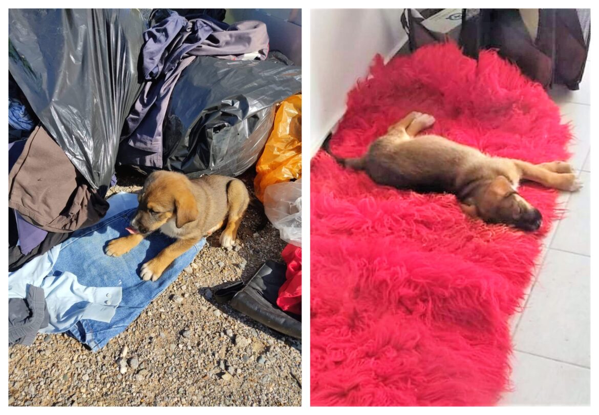 Το κουταβάκι λοιπόν αυτό βρέθηκε στα σκουπίδια, πριν το ελαιοτριβείο του Καρβέλη στην Καλαμάτα. Μια ψυχούλα στα σκουπίδια.