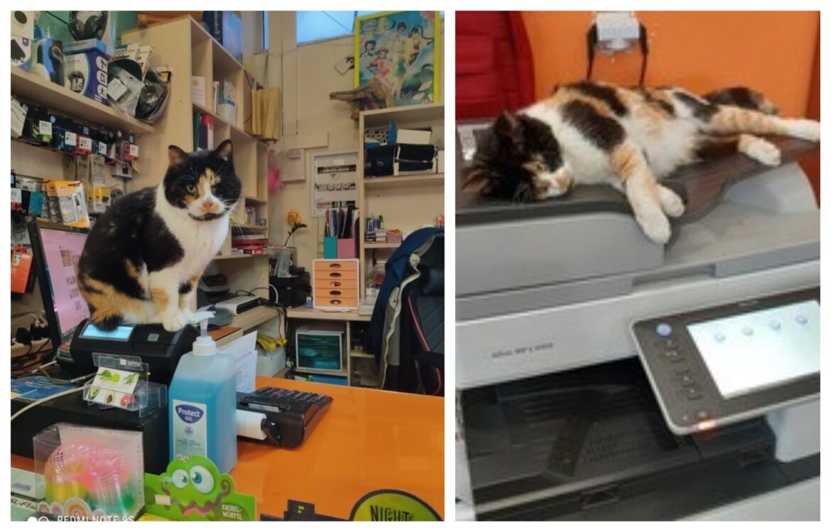 Οι άνθρωποι του βιβλιοπωλείου έχουν εδώ και 11 χρόνια μια γατούλα που ήταν αδέσποτη. Η γάτα λέγεται Κίττυ και θα τη δείτε είτε στη βιτρίνα να κάθεται είτε στο μηχάνημα που βγάζει φωτοτυπίες και στο ταμείο. Κάποια στιγμή στο παρελθόν, τον Ιούλιο του 2020, η Κίττυ χάθηκε αλλά ευτυχώς βρέθηκε. Ήταν τρομοκρατημένη από ένα γάτο. Και πήγε πάλι στο χώρο της.