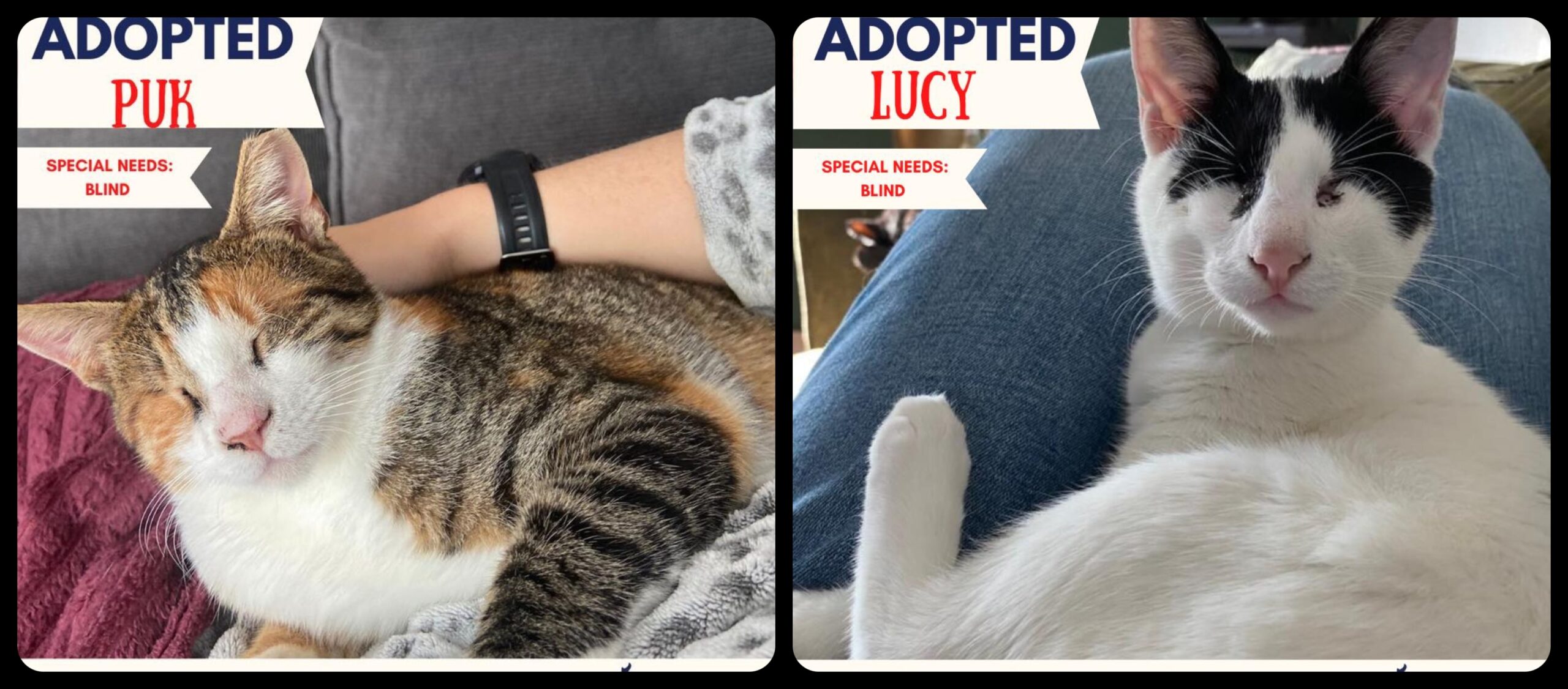 Η χαρά και η ικανοποίηση των εθελοντών όταν ένα ζώο με ειδικές ανάγκες βρίσκει σπίτι και φεύγει από το δρόμο δεν περιγράφονται. Γιατί ένα τέτοιο πλάσμα έχει πολλές δυσκολίες. Από τη μία δεν υπάρχει καμία ελπίδα επιβίωσης στο δρόμο και από την άλλη δυστυχώς δεν υπάρχουν πολλοί που θα επιλέξουν ένα τέτοιο ζώο για υιοθεσία. Τουλάχιστον στη χώρα μας.