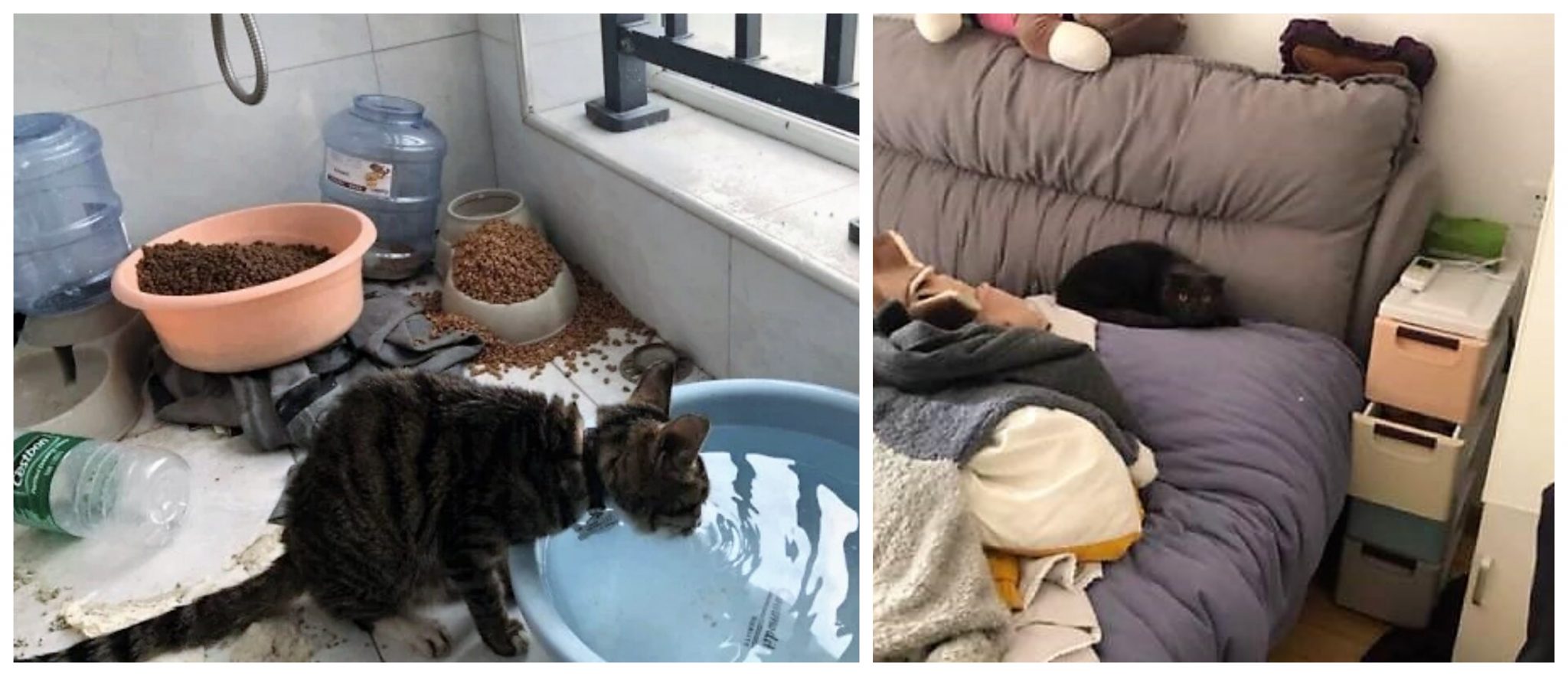 Ένας από τους διασώστες, ο 42χρονος Λάο Μάο, περιγράφει πώς σκαρφάλωσε σε σκουριασμένους σωλήνες για να φθάσει στο μπαλκόνι διαμερίσματος του τρίτου ορόφου ώστε να μπορέσει να ταΐσει τις γάτες ενός ζευγαριού που δεν μπορούσε να επιστρέψει στο σπίτι εξαιτίας του ιού. Μπήκε στο σπίτι και τάισε τις γάτες που λιμοκτονούσαν. Ο Μάο βρήκε τα ζώα εξασθενημένα, κάτω από τον καναπέ.