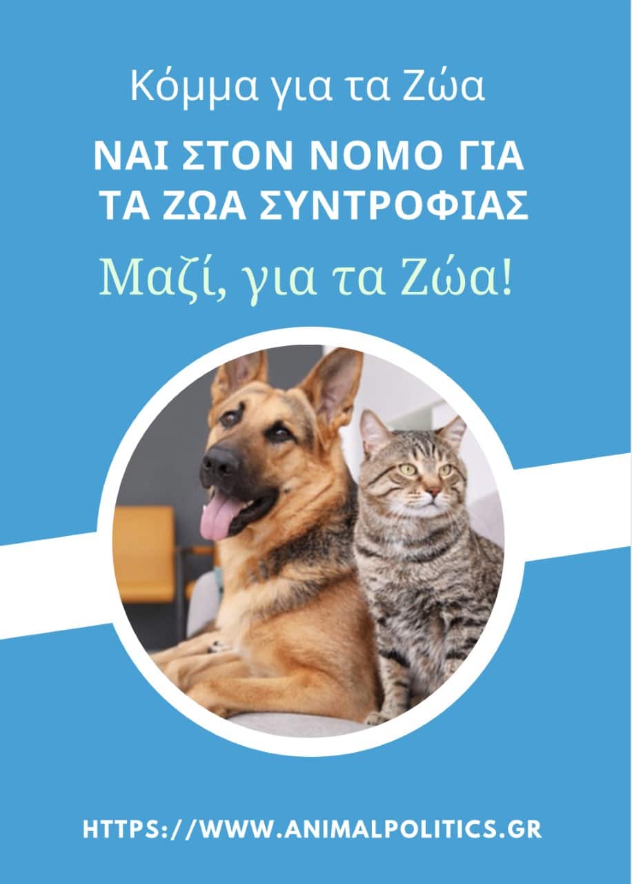 Το Κόμμα για τα Ζώα θα συμμετέχει ενεργά στην ενημέρωση της κοινής γνώμης και των πολιτικών και κοινωνικών δυνάμεων, ώστε αυτά τα μέτρα να υποστηριχτούν από την ευρύτατη κοινωνική και πολιτική πλειοψηφία και ο νόμος να λειτουργήσει πράγματι ως καταλύτης βελτίωσης της ζωής των εκατομμυρίων ζώων συντροφιάς στην Ελλάδα. Είναι πολύ σημαντικό να προασπίσουμε τις θετικές πρόνοιες του Νόμου από τις επιθέσεις όσων πλήττονται από αυτές και ήδη αντιδρούν.