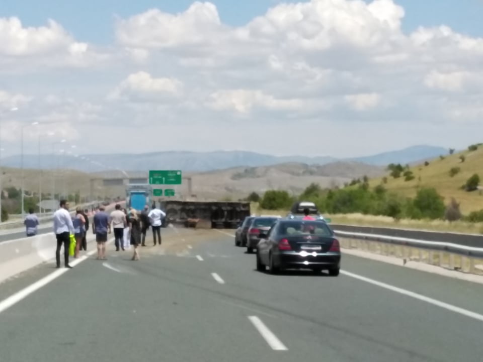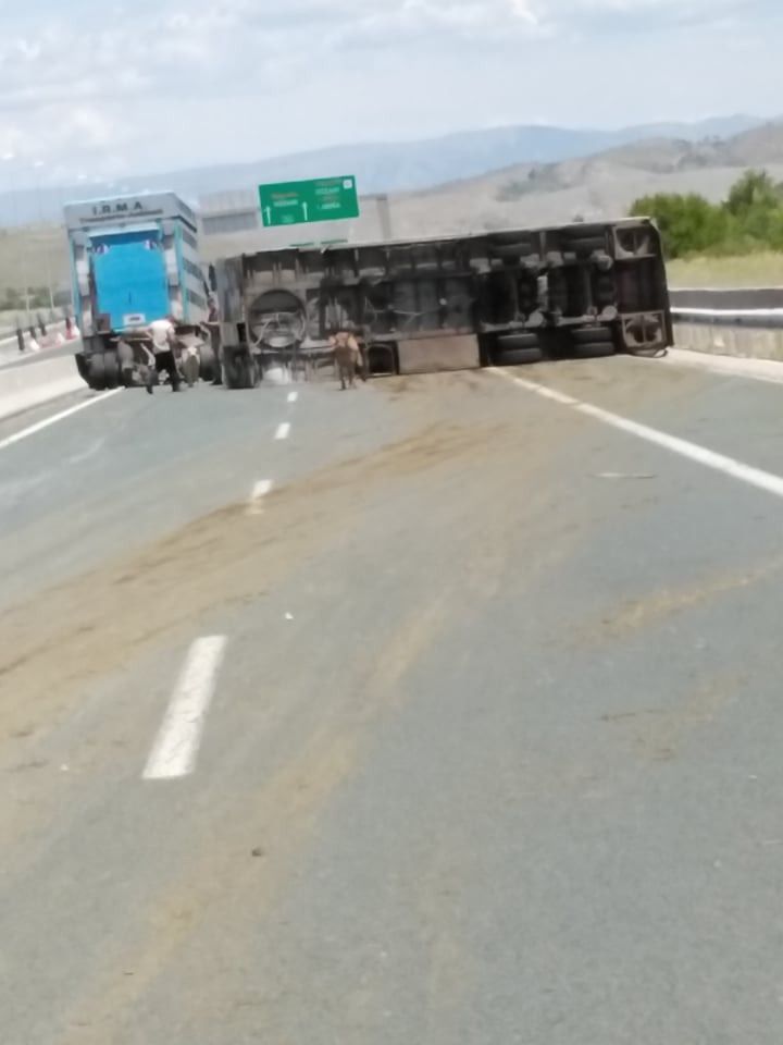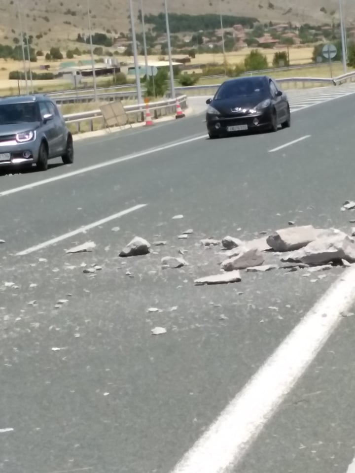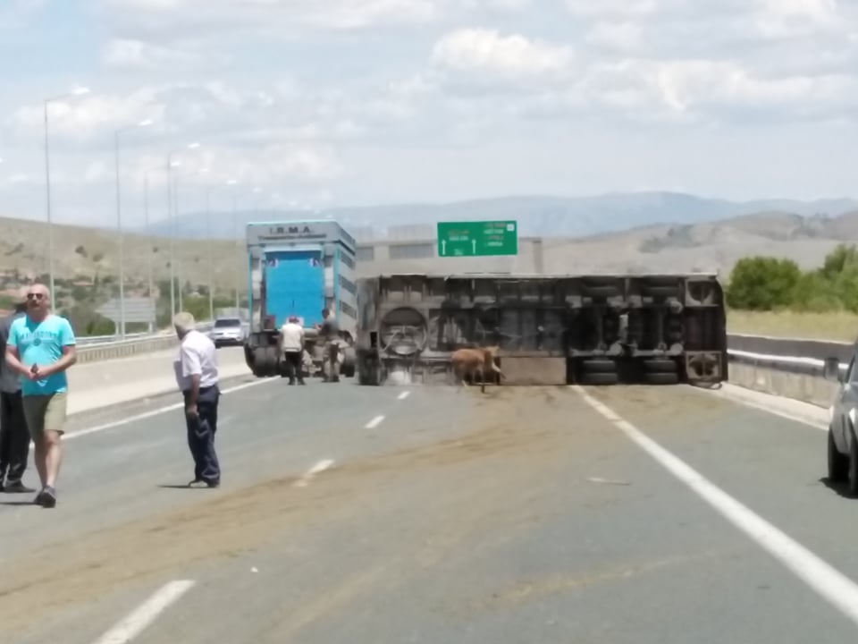 “Έσκασε το λάστιχο της νταλίκας και έφυγε αριστερά στο στηθαίο. Δίπλα ήταν και ένα άλλο φορτηγό αλλά αυτό έμεινε όρθιο. Οι οδηγοί είναι και οι δύο καλά. Μια, αγελάδα είναι τραυματισμένη αρκετά. Κάποια ελαφριά και κάποια ζώα έφυγαν και προσπαθεί η αστυνομία να τα μαζέψει από την Εγνατία. Έτσι έκλεισαν και τα δύο ρεύματα για να μη γίνει και στο άλλο ρεύμα ατυχία από τα ζώα και από τα τσιμέντα που εκσφενδονίστηκαν.”