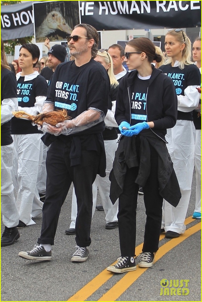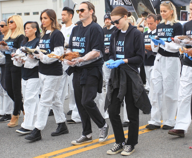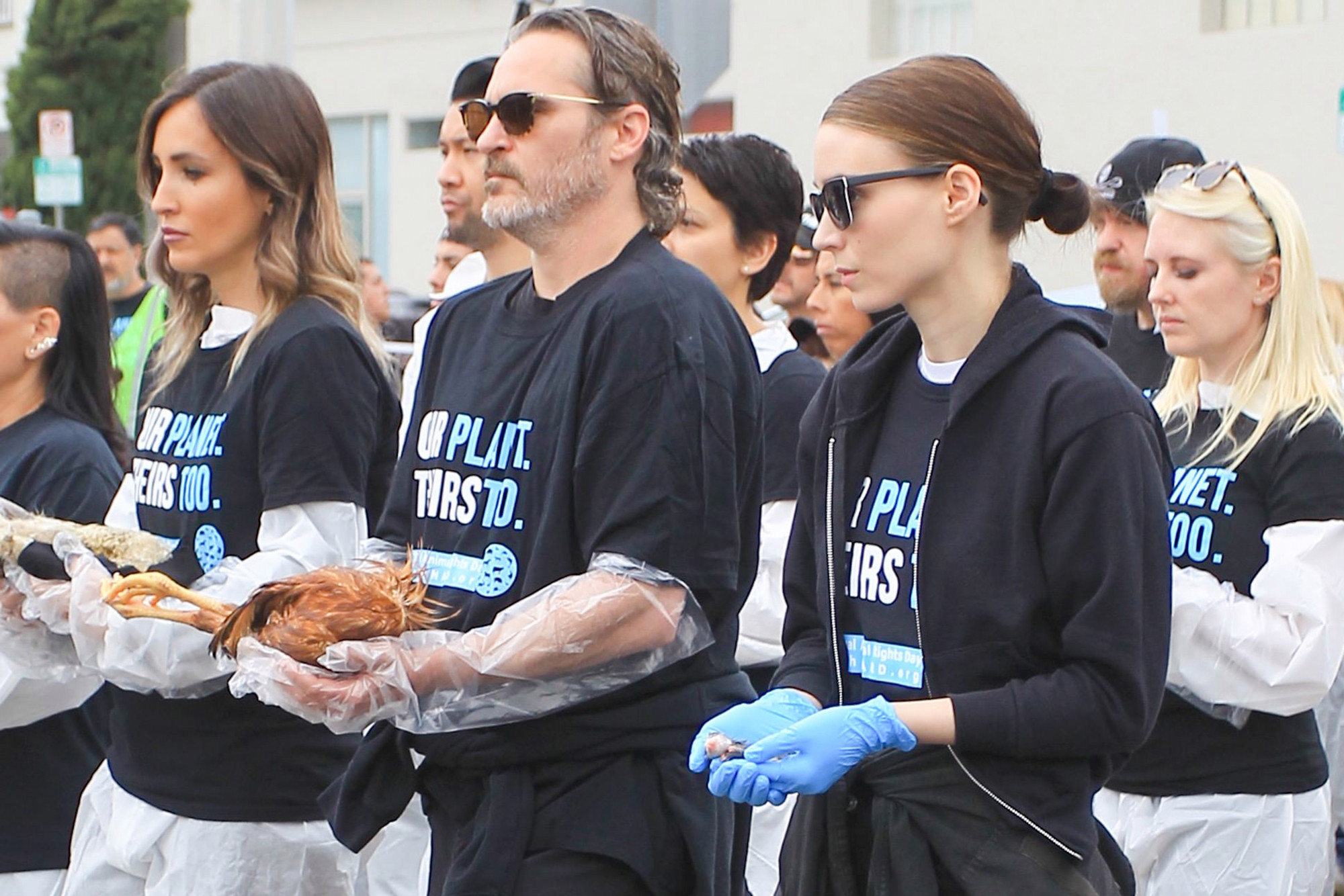 Γνωστοί φιλόζωοι και ακτιβιστές υπέρ των δικαιωμάτων των ζώων, οι ηθοποιοί Rooney Mara και ο σύντροφός της Joaquin Phoenix πήραν μέρος σε μια διαμαρτυρία στην Παγκόσμια Μέρα για τα Δικαιώματα των ζώων, National Animal Rights Day, που έγινε αυτές τις μέρες στο Δυτικό Χόλιγουντ του Λος Άντζελες.