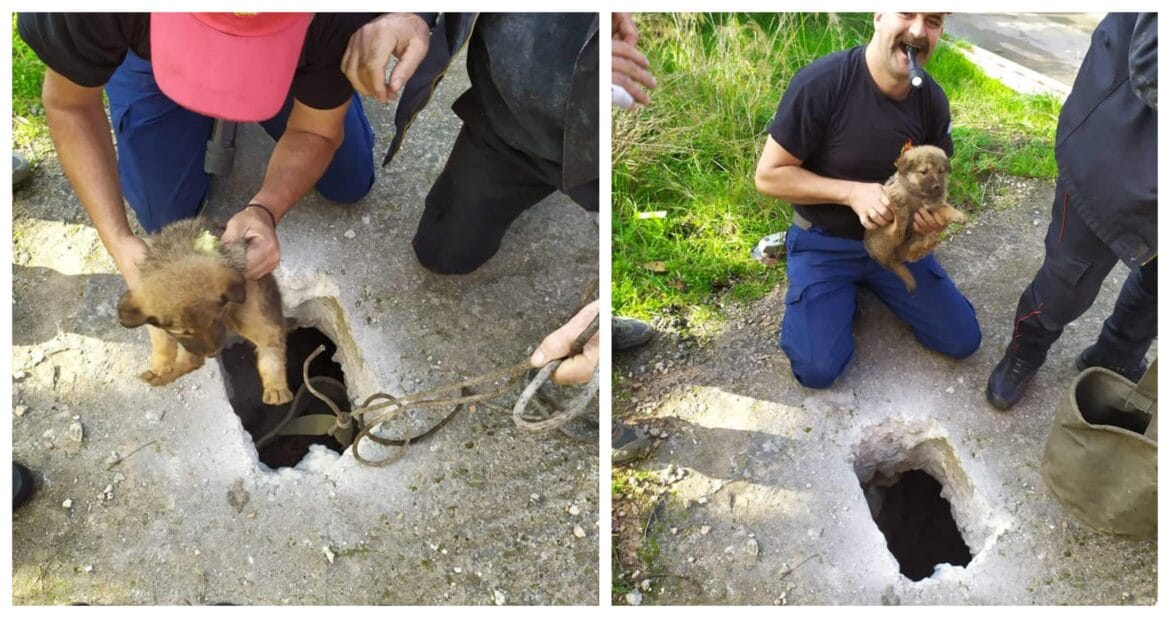 Το άνοιγμα ήταν πολύ μικρό και χρειάστηκε πολλή ώρα να το ανοίξουν. Στη συνέχεια τράβηξαν με καλάθι το κουταβάκι που ευτυχώς ήταν καλά στην υγεία του.