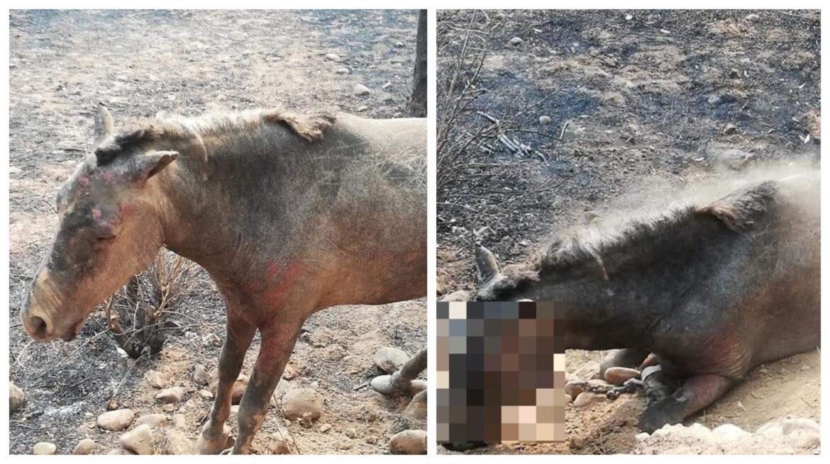 Ένα άλογο που δεν μπορούσε να τρέξει κανονικά για να γλυτώσει από τη φωτιά και έπαθε εγκαύματα τρίτου βαθμού. Σχεδόν παντού.