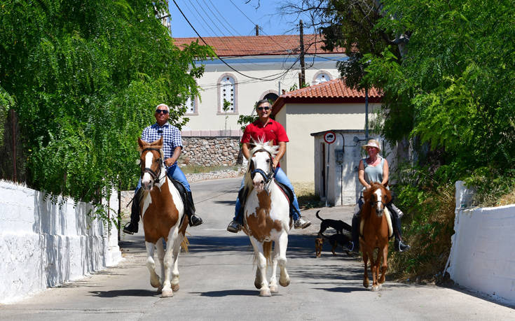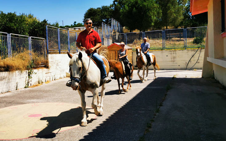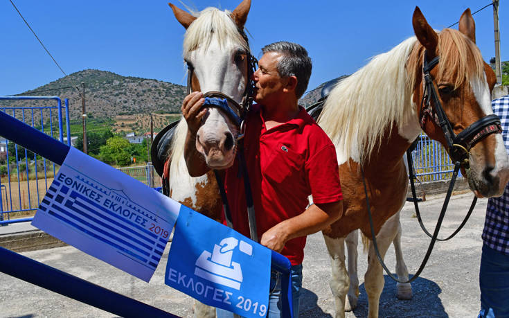 Οι τρεις φίλοι ψήφισαν στις Εθνικές εκλογές 2019 στο εκλογικό τμήμα Λευκακίων στο Ναύπλιο προσερχόμενοι… έφιπποι.