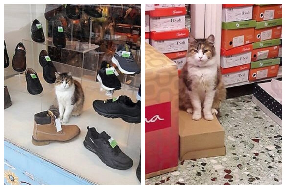 Αν πάτε στο κατάστημα και είστε τυχεροί, θα τη δείτε είτε να παίρνει τον ύπνο της στη βιτρίνα είτε να κάθεται εκεί και να παρακολουθεί.
