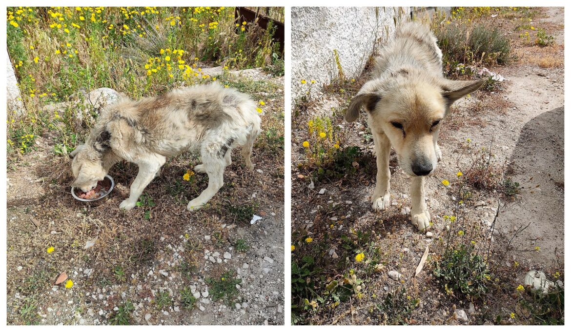 Το ζώο βρέθηκε σε ένα χωριό στην Καλλιθέα Λουτρακίου, σε άθλια κατάσταση, όπως βλέπετε στις φωτογραφίες. Κοκαλιασμένο και γεμάτο τσιμπούρια. Χωρίς να μπορεί ούτε να περπατήσει. Όπως γράφει η εθελόντρια το έβλεπε στο παρελθόν πηγαίνοντας στη χωματερή και του έδινε φαγητό. Κάποιες όμως μέρες είχε εξαφανιστεί. Και εμφανίστηκε πάλι σε αυτήν την κατάσταση.
