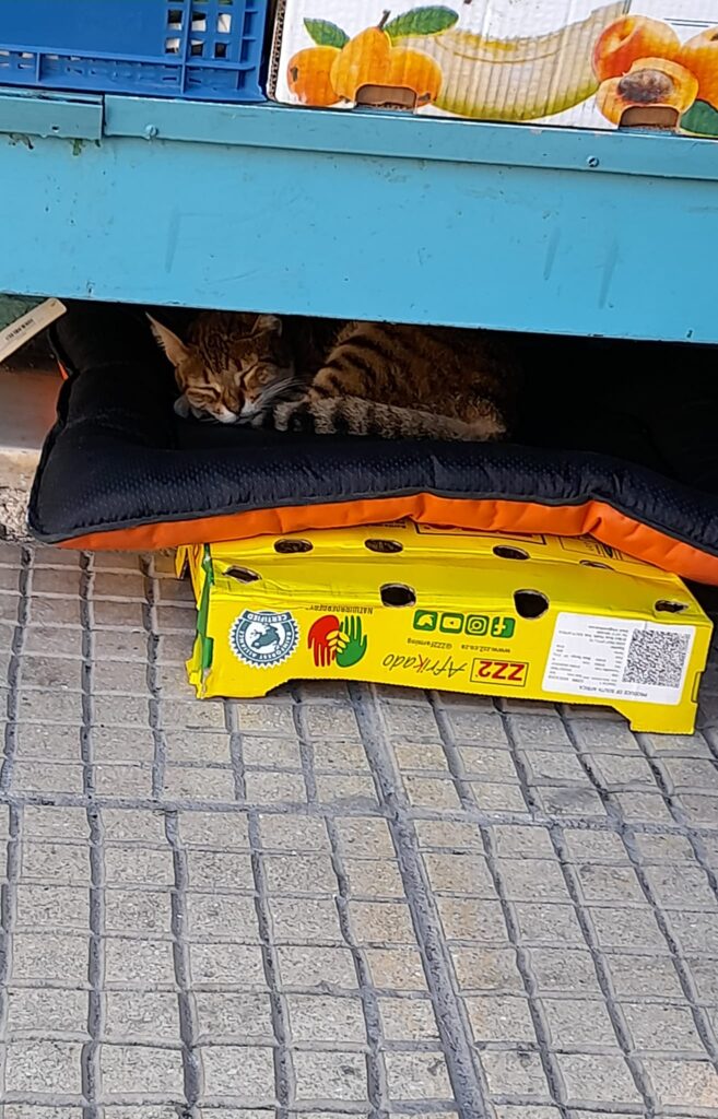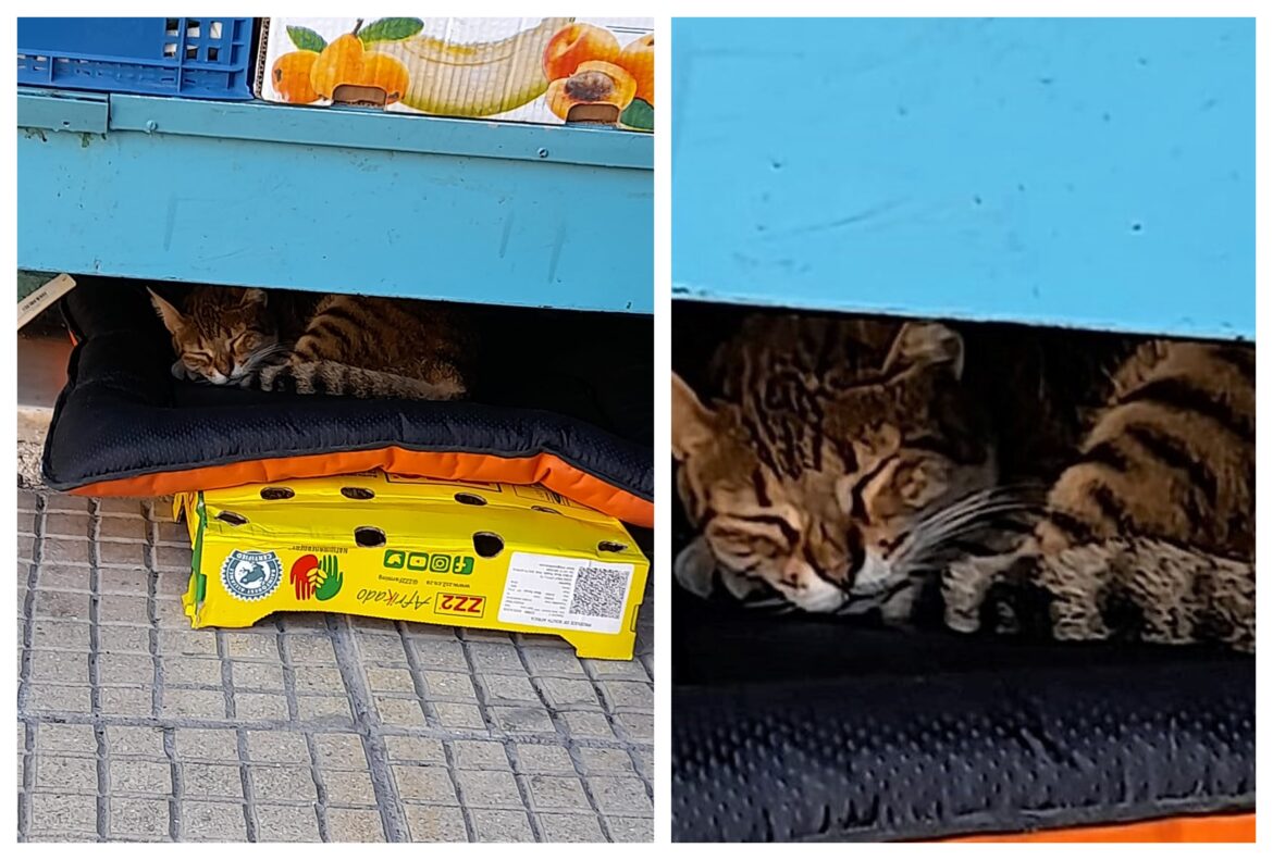 Μανάβικο στην Κυψέλη υιοθέτησε και φροντίζει μια αδέσποτη γατούλα