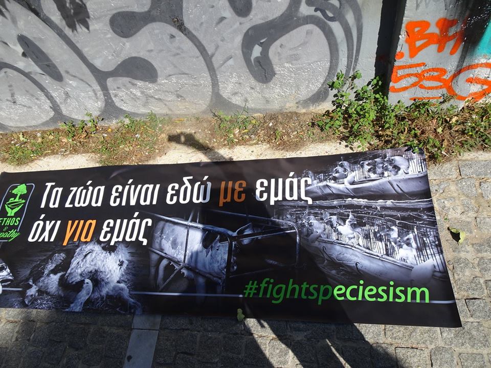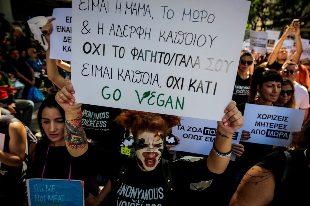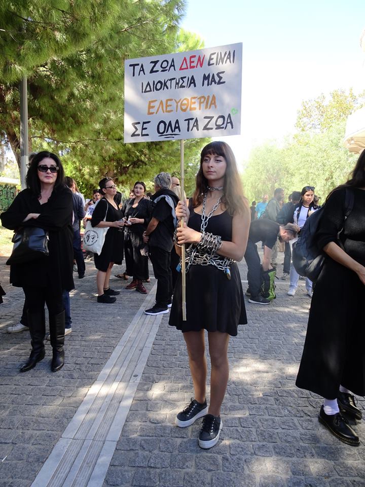 Με κεντρικά συνθήματα «τα ζώα δεν είμαστε σκλάβοι σας» και «τα ζώα δεν είναι ιδιοκτησία μας», πραγματοποιήθηκε το πρωί του Σαββάτου συγκέντρωση διαμαρτυρίας για τα δικαιώματα των ζώων.