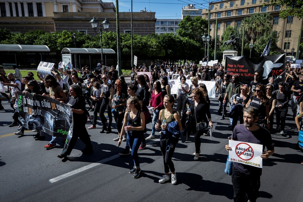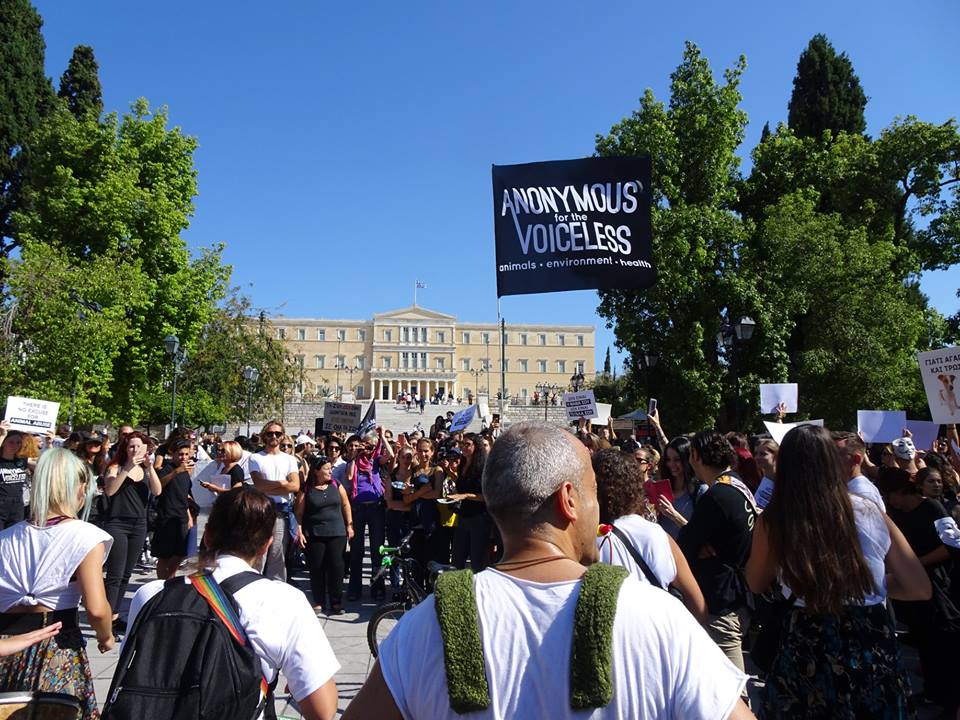 Η συγκέντρωση έγινε στο Θησείο και στη συνέχεια ακολούθησε πορεία προς το Σύνταγμα, με αφορμή την Παγκόσμια Ημέρα των Ζώων που εορτάζεται στις 4 Οκτωβρίου.