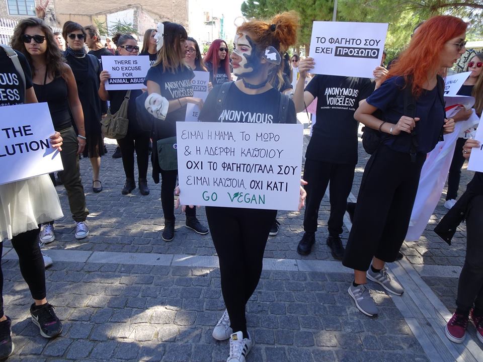 Οι συγκεντρωμένοι φορούσαν μαύρα ρούχα τα περισσότερα με κάποιο μήνυμα υπέρ των δικαιωμάτων των ζώων, όπως τους είχε ζητηθεί από το υπό σύσταση σωματείο Ethos & Empathy που διοργάνωσε την πορεία.