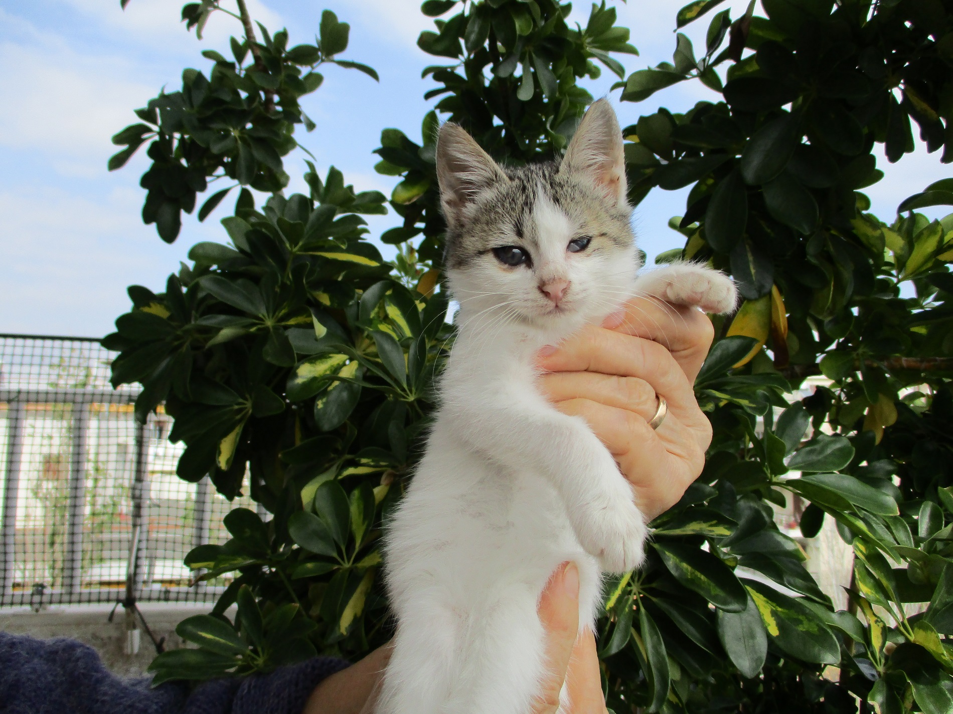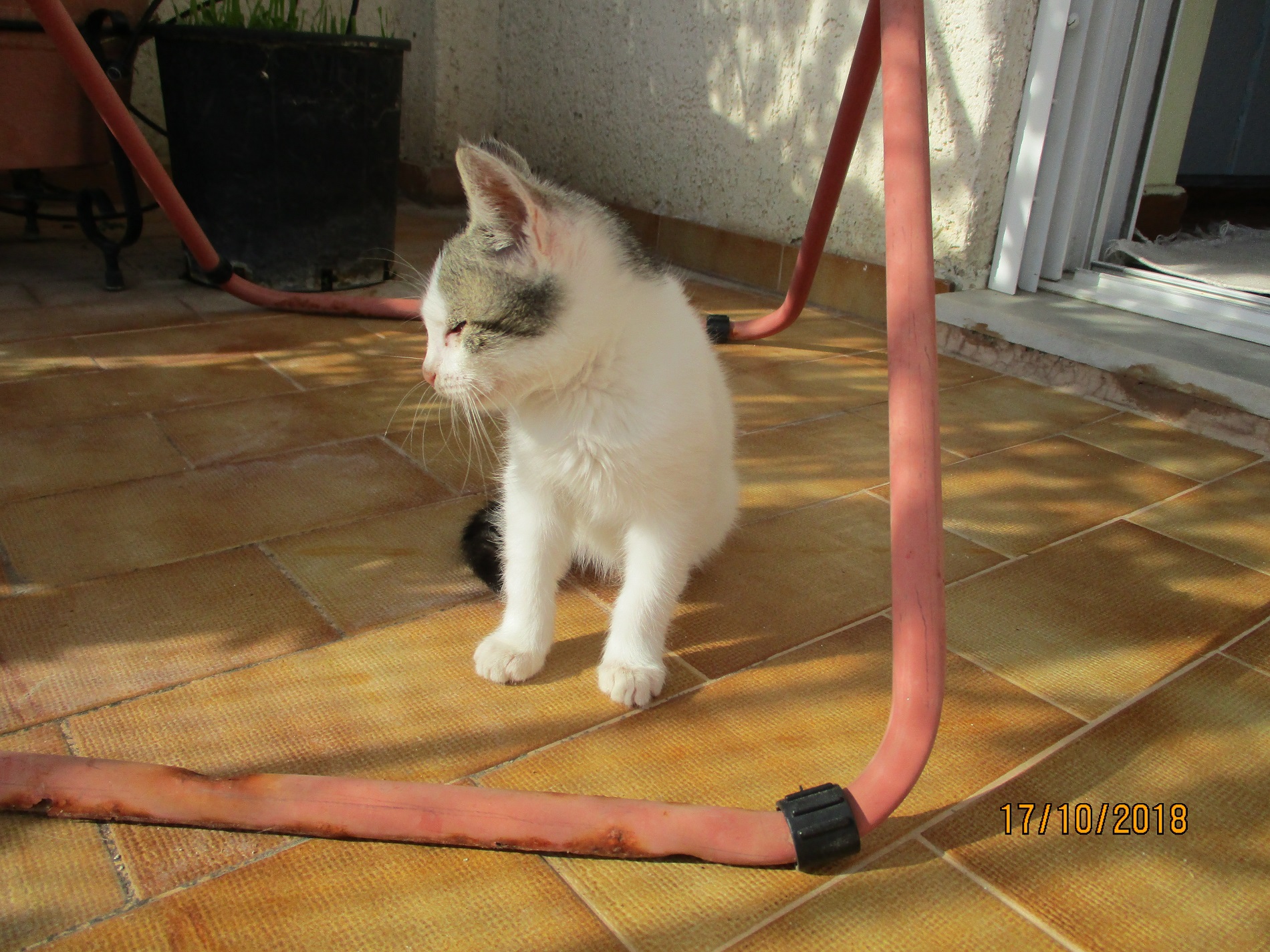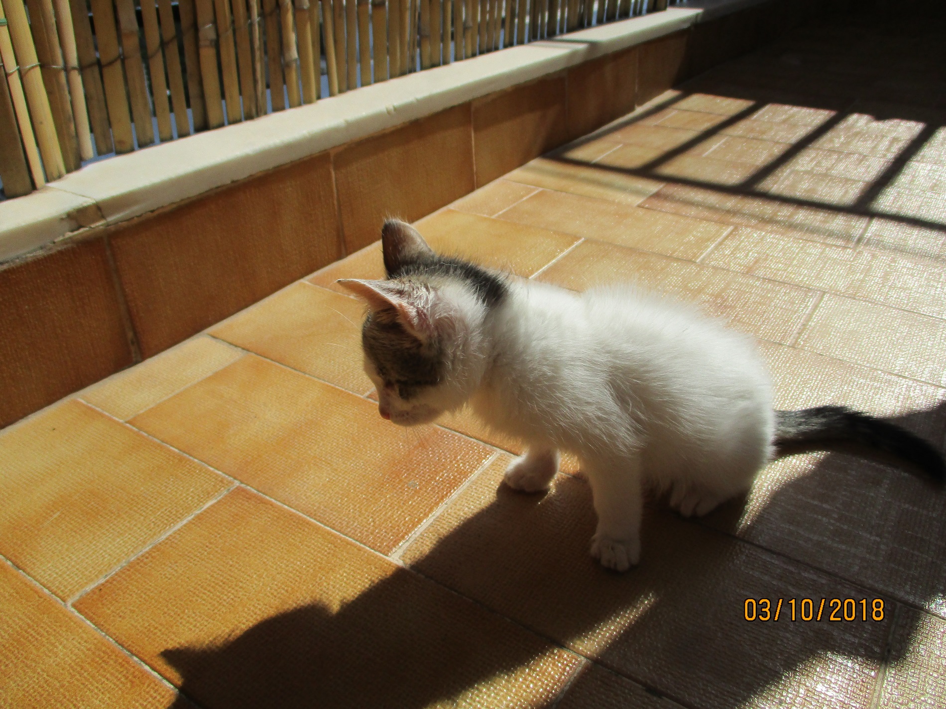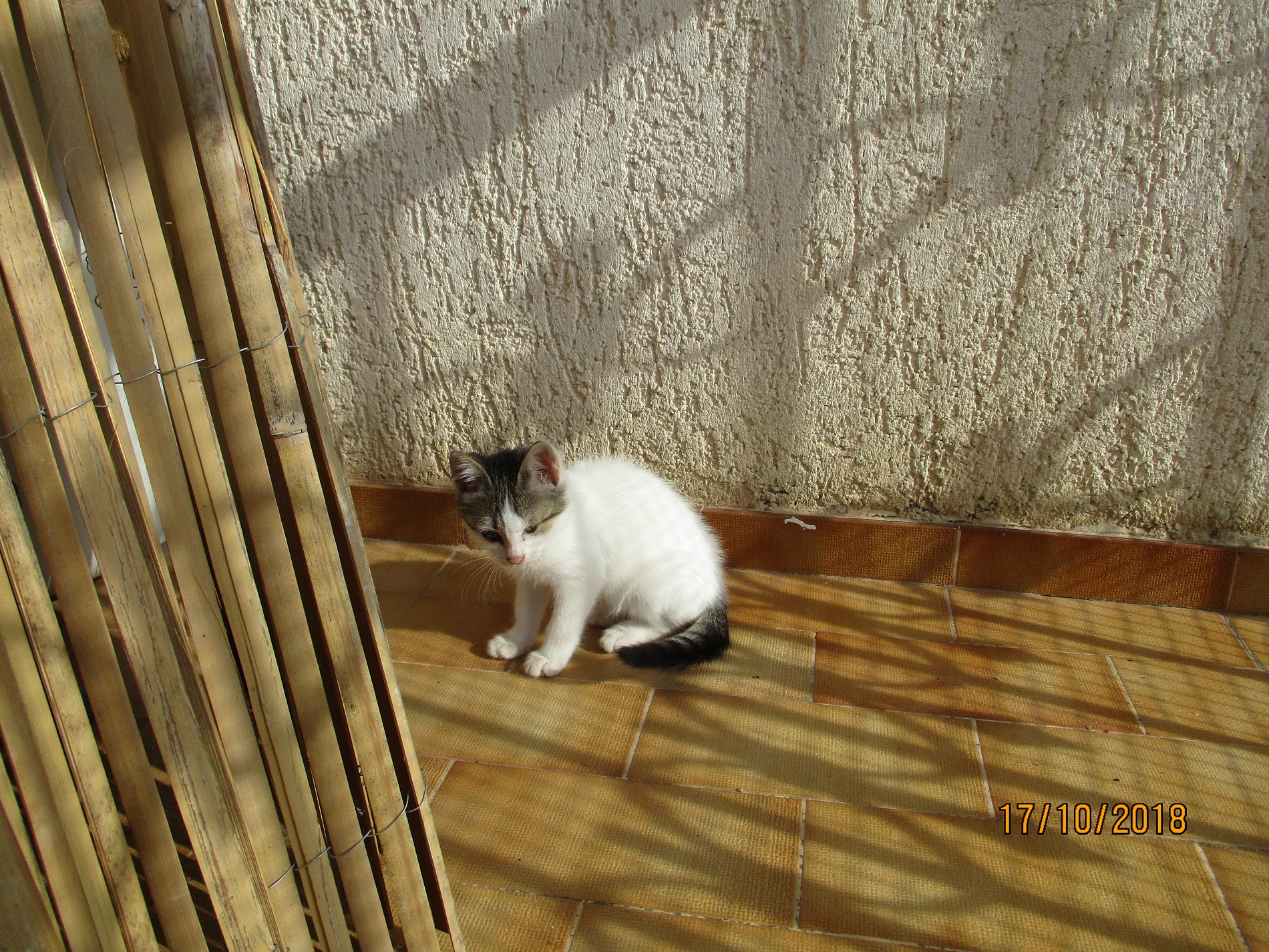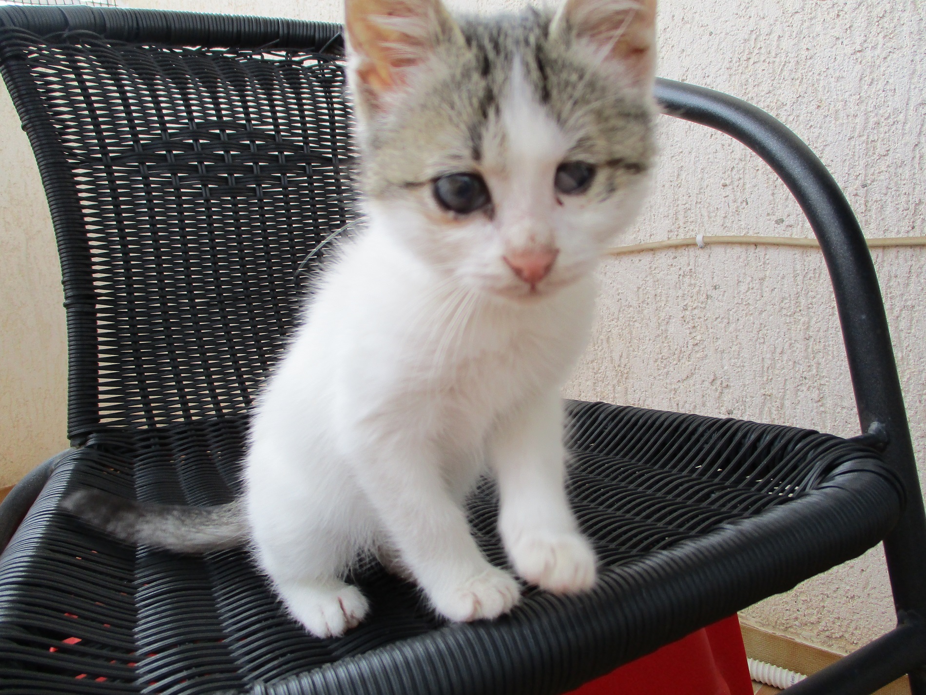 Το μικρούλι αυτό θηλυκό γατάκι, τριών περίπου μηνών, βρέθηκε άρρωστο, πεταμένο και τυφλό, μούσκεμα στη βροχή, να τρέμει από το κρύο. Ο κτηνίατρος έδωσε φαρμακευτική αγωγή αλλά ήταν κατηγορηματικός. Το ένα ματάκι χάθηκε. Το δε άλλο βλέπει ελάχιστα. Το ίδιο είπε και δεύτερος γιατρός που τα εξέτασε.
