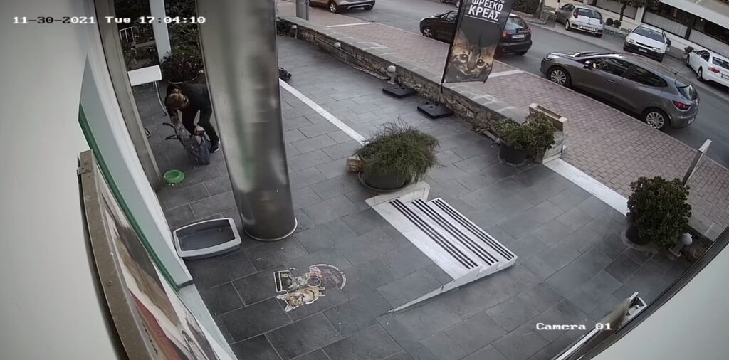 Οι κάμερες όμως ασφαλείας της επιχείρησης κατέγραψαν πολύ καθαρά το περιστατικό και φυσικά την κυρία. Η εγκατάλειψη ενός ενήλικου ζώου είναι μια πράξη που διώκεται ποινικά σε βαθμό πλημμελήματος. Όμως αν το ζώο είναι νεογέννητο, η πράξη αυτή είναι κακούργημα.