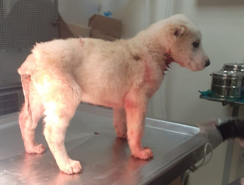 Η αιμορραγία συν το σοκ, συν το νεαρό της ηλικίας του, δε βοήθησαν καθόλου το μικρό κουτάβι να επανέλθει και να αναρρώσει.