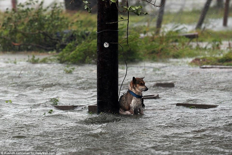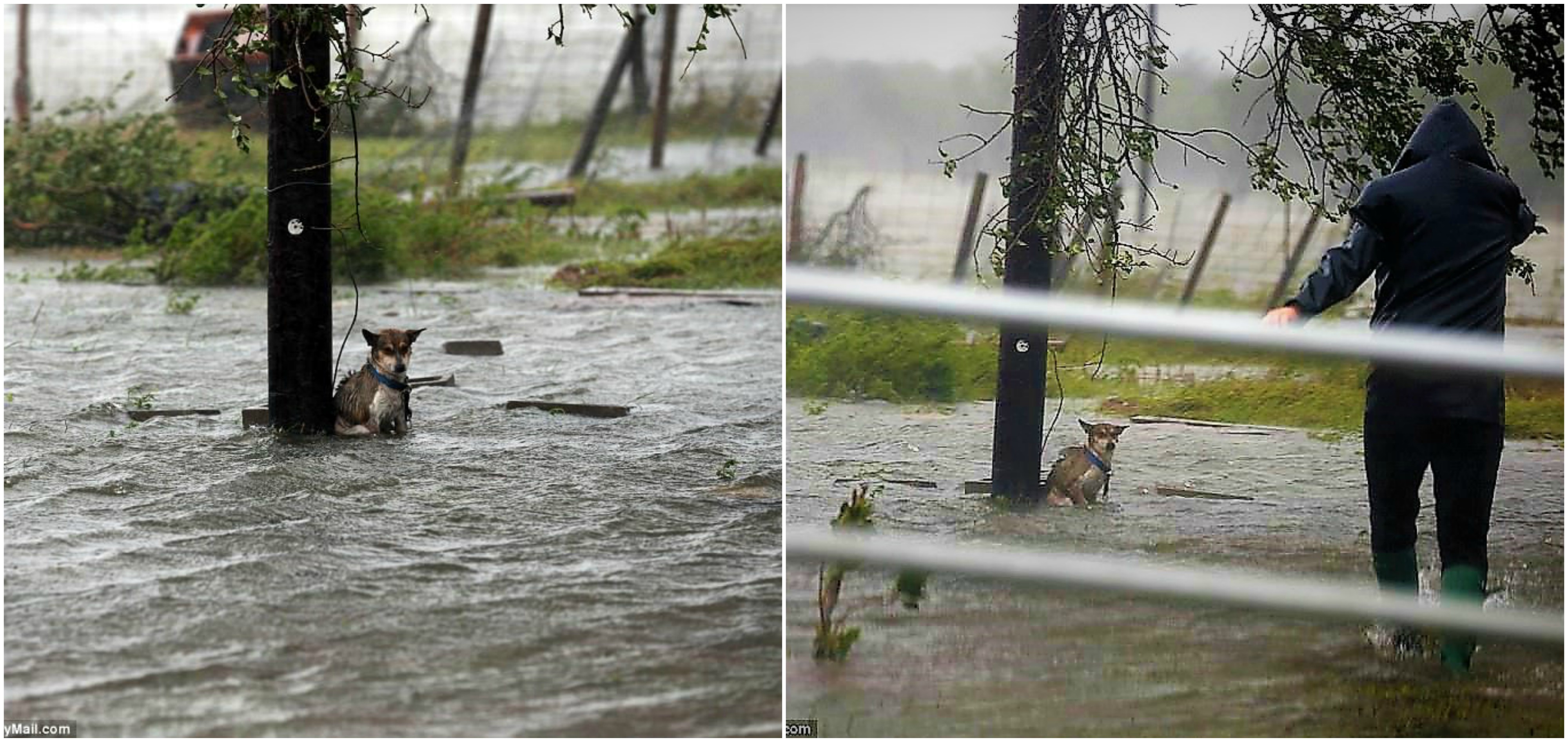 Η φωτογραφία της έκανε το γύρο του διαδικτύου ραγίζοντας τις καρδιές όλων. Ήταν παρατημένη και δεμένη με σκοινί σε μια κολώνα έξω από το σπίτι της. Το ορμητικό ποτάμι μέσα στο οποίο βρισκόταν ήταν ζήτημα χρόνου να την παρασύρει. Στάθηκε όμως τυχερή.