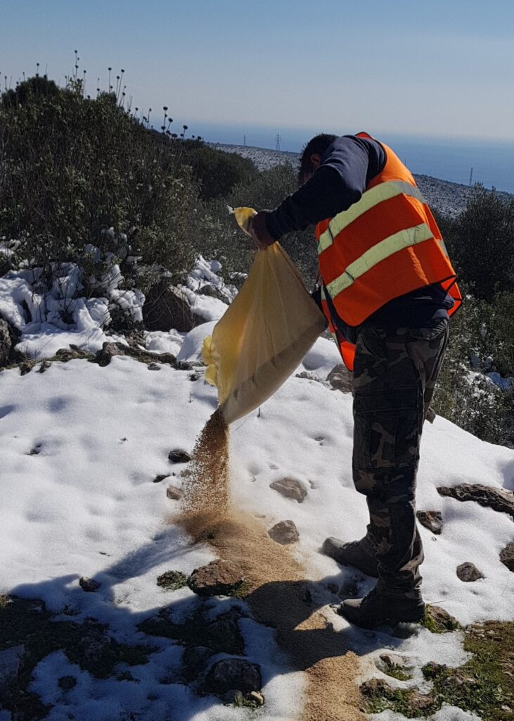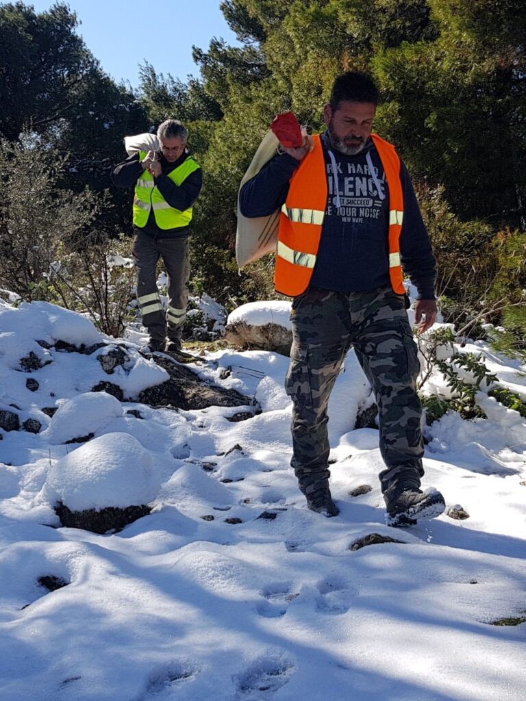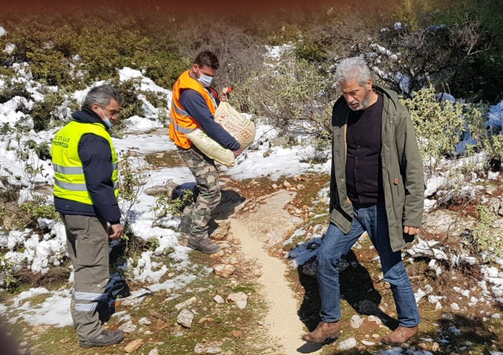 Οι άνθρωποι του Περιβαλλοντικού Συνδέσμου Δήμων Αθήνας πήγαν στο Όρος Αιγάλεω να ρίξουν τροφές στα πουλιά