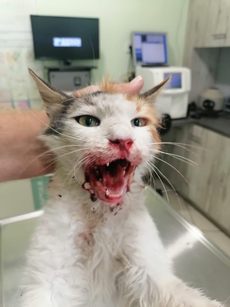 Η γατούλα μεταφέρθηκε στο ΙΑΣΙΣ ΖΩΩΝ. Μπορεί να μην είχε τίποτα σπασμένο αλλά είχε εμφανή εξωτερικά τραύματα και αιμορραγία στο κεφάλι, κάτι που όμως δεν επηρέαζε την υγεία της. Οπότε πήρε εξιτήριο ώστε να μείνει λίγες μέρες σε σπίτι και να επανενταχθεί.