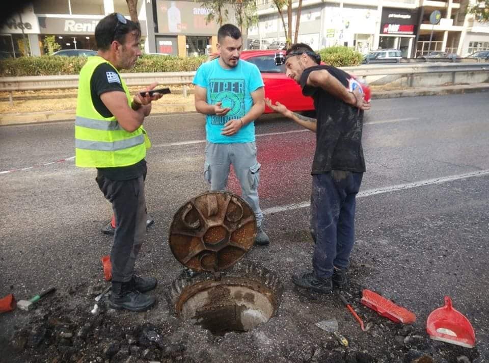Έτσι κλήθηκε Τροχαία στο σημείο, για λόγους ασφαλείας, λόγω των πολλών διερχομένων οχημάτων, προκειμένου να μπορέσουν να ανοίξουν ένα καπάκι που θα μπορούσε να τους δώσει πρόσβαση στον κεντρικό αγωγό.