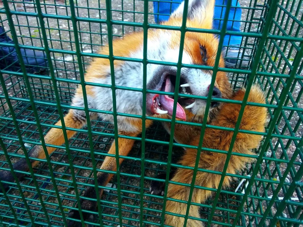 Το ζώο βρισκόταν εκεί δυο μέρες χωρίς να κάνει κανένας τίποτα. Της είχαν βάλει μόνο κροκέτες και νερό. Η αλεπουδίτσα ήταν πολύ στρεσαρισμένη και έκανε συνεχώς κύκλους γύρω από τον εαυτό της, καθαρά ως αυτοάμυνα, αφού δεν είχε την όρασή της από αυτό το σοκ, δεν είχε ισορροπία και ήταν εμφανή τα τραύματα της πτώσης της. η αλεπουδίτσα εμφανώς στρεσαρισμένη διακομίστηκε στην ΑΝΙΜΑ – Σύλλογος Προστασίας και Περίθαλψης Άγριας Ζωής όπου θα παραμείνει για νοσηλεία μέχρι να είναι εφικτό να επανενταχθεί.