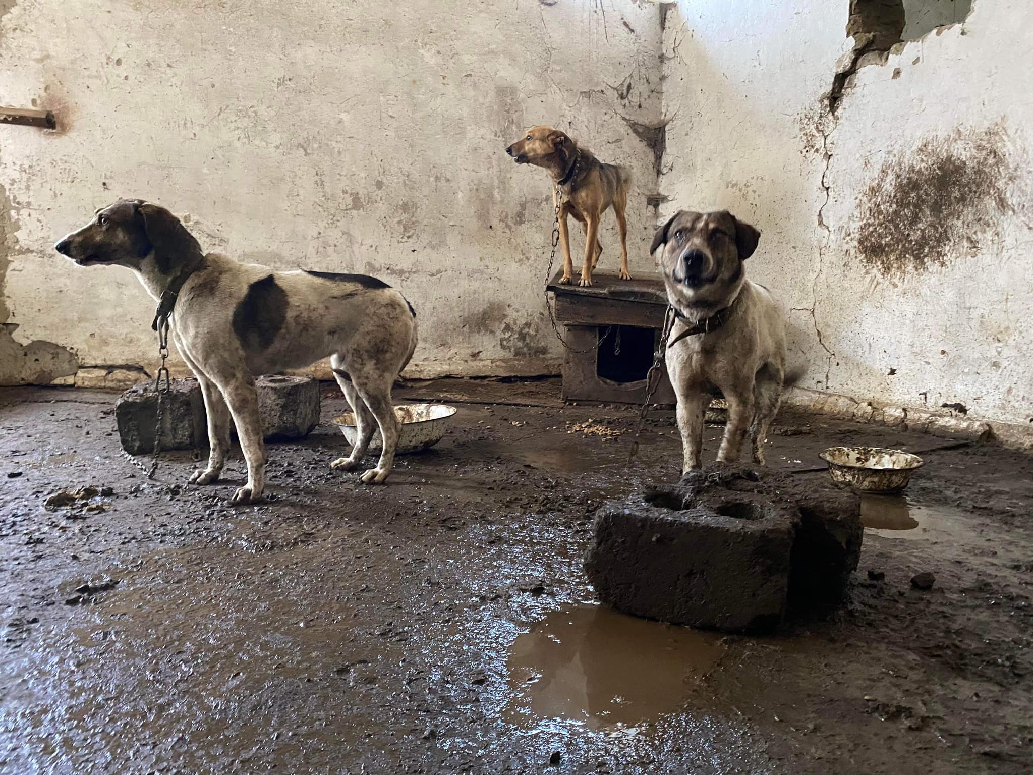 Σκυλάκια, το ένα πάνω στο άλλο, δεμένα με αλυσίδες, σε βρώμικο μέρος, πάνω στις ακαθαρσίες τους και πάνω σε νερά. Μερικά ήταν έτσι δεμένα που δεν μπορούσαν ούτε να καθίσουν κάτω. Χωρίς καθαρό νερό. χωρίς φαγητό. Κανένα σημείο δεν ήταν στεγνό ώστε να ξαπλώσουν. Κουταβάκια απίστευτα στριμωγμένα, που δεν μπορούσαν να πάρουν ούτε αναπνοή.