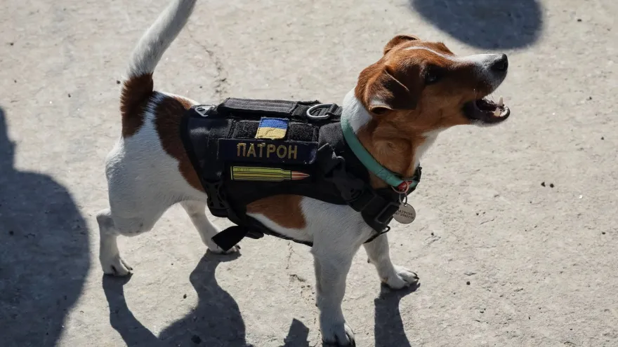 Ο Πατρόν εργάζεται στην πρώτη γραμμή στην εμπόλεμη ζώνη στην Ουκρανία και έχει γίνει viral στο διαδίκτυο. Πρόκειται για έναν εκπαιδευμένο σκύλο που μυρίζει νάρκες. O Πατρόν εντόπισε περισσότερους από 150 εκρηκτικούς μηχανισμούς και νάρκες ξηράς από την αρχή του πολέμου.