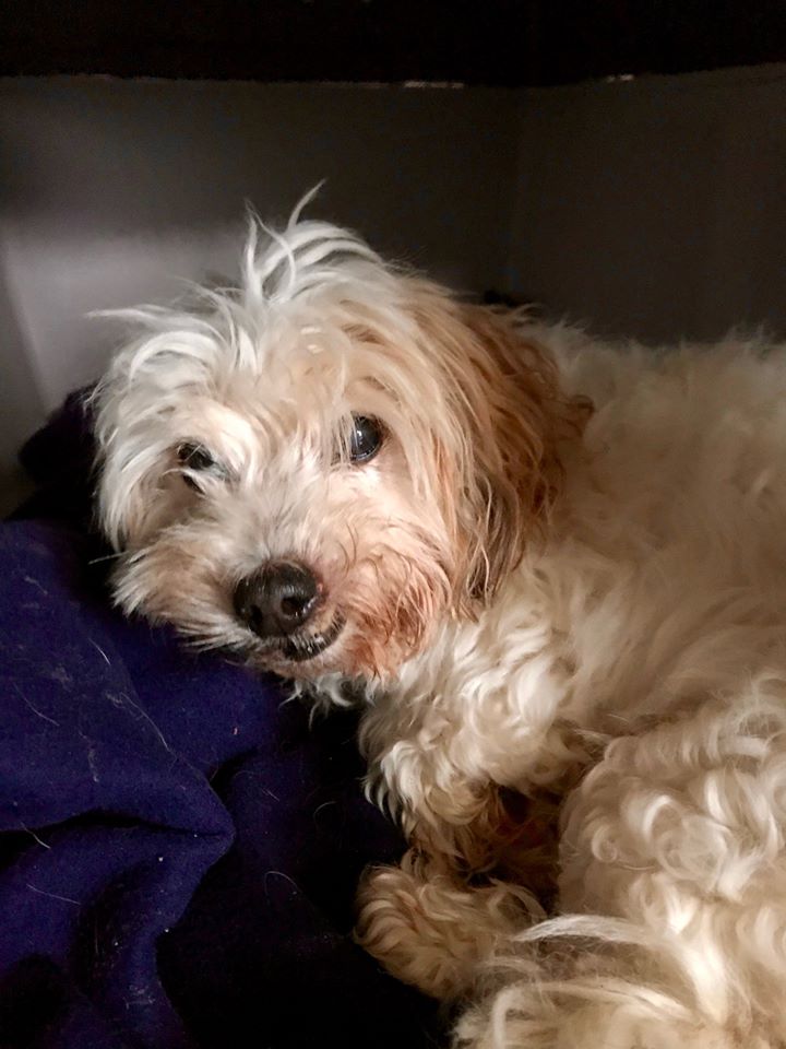Πρόκειται για μια ηλικιωμένη σκυλίτσα, τυφλή και κουφή, μόλις 6-7 κιλά. Το ζώο στεκόταν στην πόρτα κοκκαλωμένο και σε σοκ, κάτι που είναι απολύτως λογικό.