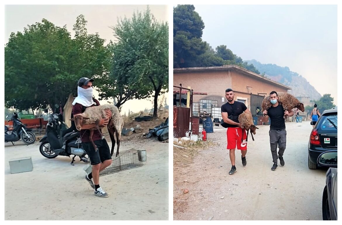 Εκεί η εικόνα ήταν συγκλονιστική. Πενήντα περίπου νεαρά παιδιά έπαιρναν γρήγορα στην αγκαλιά κατσικούλες, προβατάκια, κουνέλια και κότες και έτρεχαν να τα σώσουν.