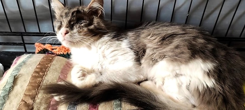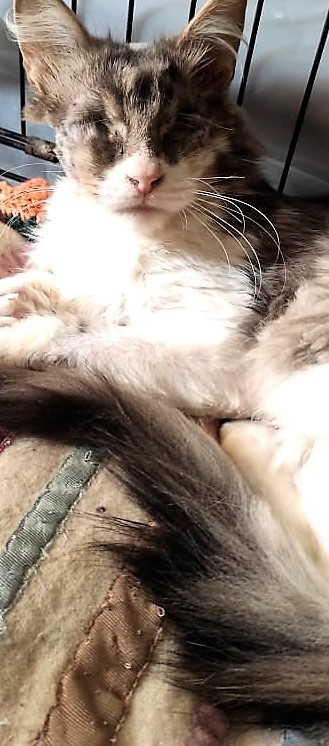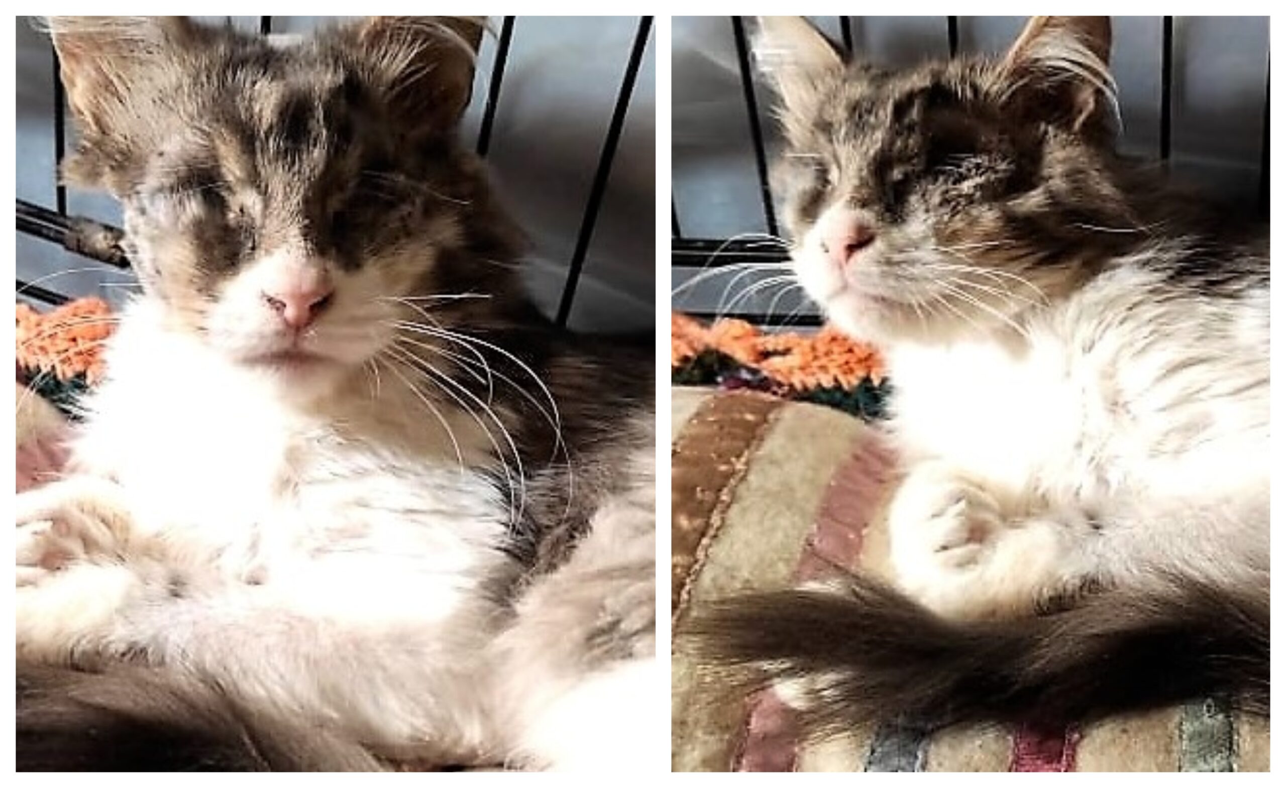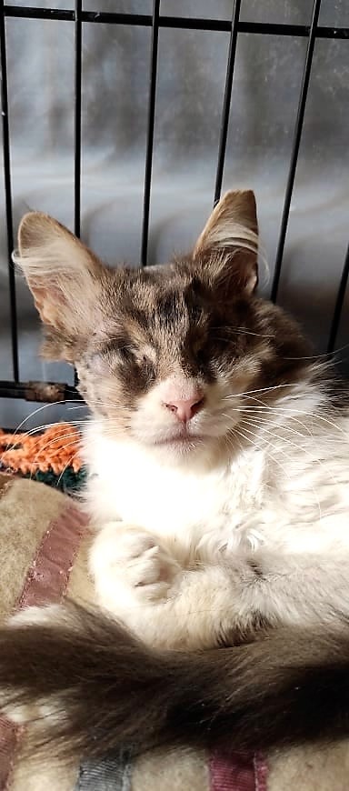 Ο γατούλης ήταν ένας όμορφος, μοναχικός νεαρός γατούλης, όπως αναφέρουν οι εθελοντές SAVE Stray Animals and Volunteers, Εθελοντές και Αδέσποτα Λυκόβρυσης Πεύκης, ώσπου του συνέβη κάτι τραγικό που τον μετέτρεψε σε ένα τρομαγμένο ζωάκι. Έπεσε σε ασβέστη που είχε αφεθεί ακάλυπτος σε οικοδομή, με αποτέλεσμα να πληγωθεί πολύ άσχημα και να τυφλωθεί.