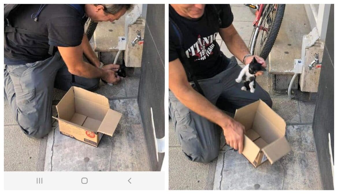 Έτσι ανέλαβε εθελοντής του Φιλοζωικού Ομίλου Σερρών, γνωστός για τη φιλοζωική του δράση, ο Σάκης Ζ. και πήγε να κάνει και αυτός μια προσπάθεια. Και τα κατάφερε. Το γατάκι απεγκλωβίστηκε και μεταφέρθηκε από τον ίδιο σε κτηνιατρείο για τις πρώτες βοήθειες.
