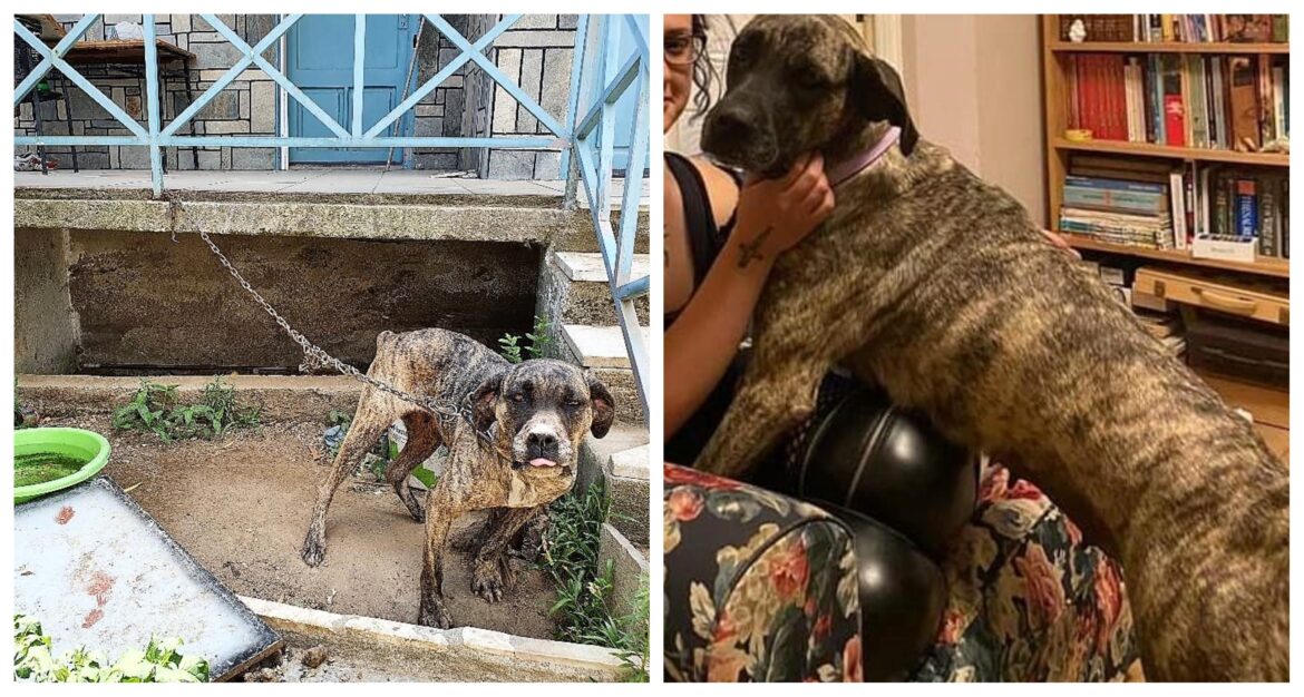 Η σκυλίτσα ήταν δεμένη έξω από σπίτι με αλυσίδα για πάνω από ένα χρόνο, όταν αυτοί που έμεναν εκεί έφυγαν και την παράτησαν χωρίς νερό και φαγητό. Όλον αυτόν το καιρό το ζώο ζούσε χάρη στους γείτονες που του έβαζαν νερό και φαγητό.