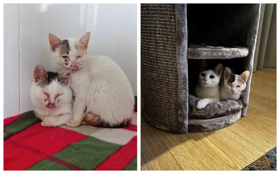 Πρόκειται για μια υπέροχη υιοθεσία δύο μικρών γατιών που ξεκίνησαν άσχημα της ζωή τους στους αφιλόξενους δρόμους της χώρας μας. Όμως χάρη στους εθελοντές αυτή τη στιγμή έχουν σπίτι.