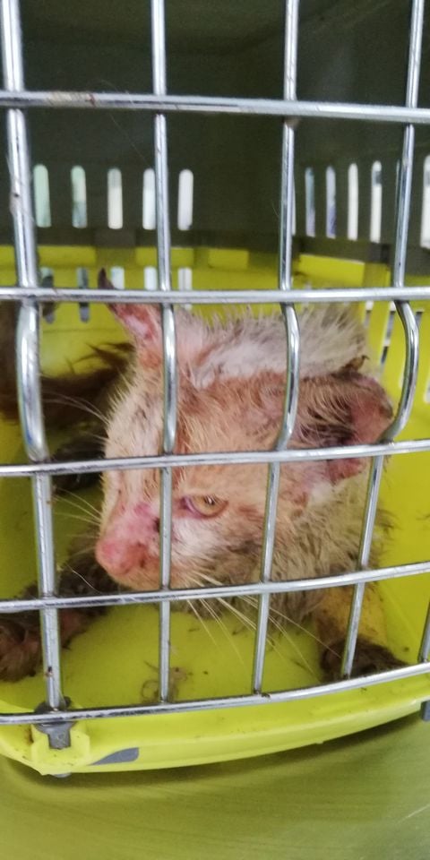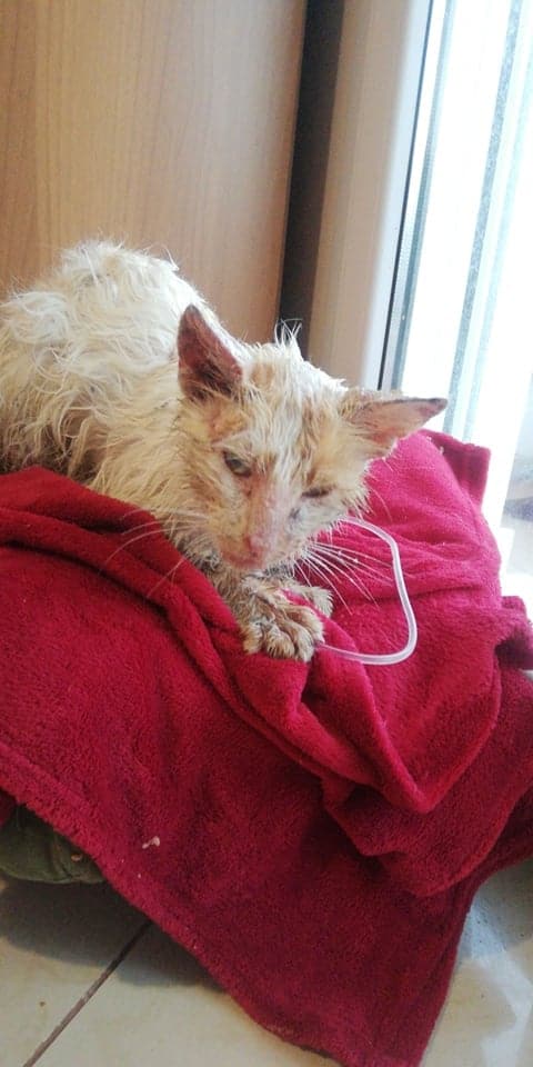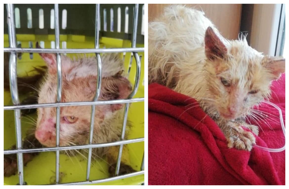 Ο γατούλης νοσηλεύεται σε ιδιωτικό κτηνιατρείο σε κρίσιμη κατάσταση.