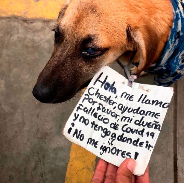 Το ζώο έμεινε μόνο του να περιφέρεται στους δρόμους ζητώντας λίγο φαγητό. Λίγο πιο εκεί ήταν ένα σούπερ μάρκετ, στο οποίο εργαζόταν ο άνθρωπος που το είχε. Όσοι πέρασαν δίπλα του είδαν ένα σημείωμα στο λαιμό του που έγραφε “Γεια σας. Λέγομαι Chester και θέλω να με βοηθήσετε. Ο άνθρωπος που με είχε πέθανε από Covis-19 και δεν έχω πού να πάω. Σας παρακαλώ, μη με αγνοήσετε”. Οι υπάλληλοι του καταστήματος γνώριζαν την ιστορία του και του έβαλαν αυτό το σημείωμα μήπως κάποιος από τους πελάτες τους θελήσει να τον υιοθετήσει.