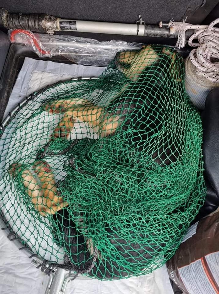 Ένα φοβικό ζώο στην κατάσταση αυτή είναι φυσικό να μην είναι εύκολα διαχειρίσιμο λόγω του στρες και φυσικά του πόνου που βιώνει τόσο καιρό. Όμως κατάφεραν και την έπιασαν.