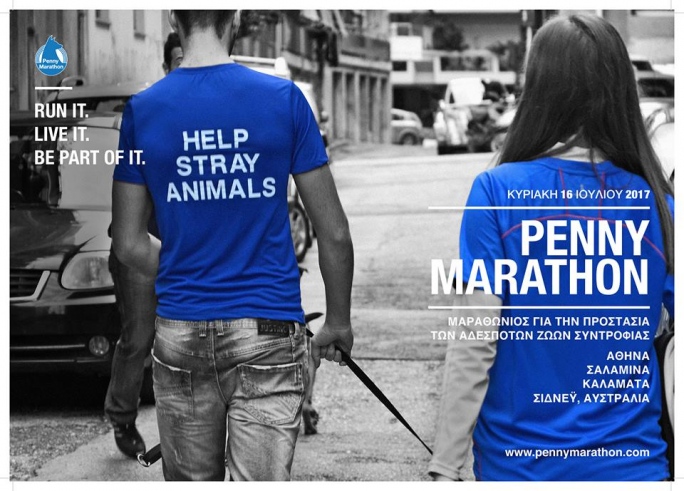 Την Κυριακή 16 Ιουλίου 2017 θα διεξαχθεί ο 6ος μαραθώνιος αγώνας δρόμου «Penny Marathon» στις πόλεις της Αθήνας, της Σαλαμίνας, της Καλαμάτας και του Σίδνεϊ της Αυστραλίας. Σκοπός του μαραθωνίου είναι η συγκέντρωση χρημάτων που θα διατεθούν στην κάλυψη των αναγκών σίτισης και κτηνιατρικής φροντίδας των αδέσποτων, η ευαισθητοποίηση του κόσμου για όσα συμβαίνουν στα ζώα και η αναγνώριση του έργου των εθελοντών που φροντίζουν αυτά τα πλάσματα και αγωνίζονται για την προάσπιση των δικαιωμάτων τους.