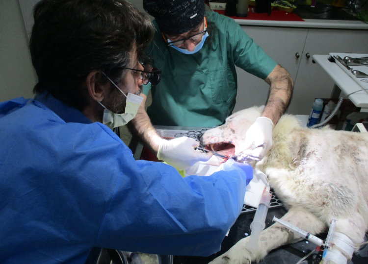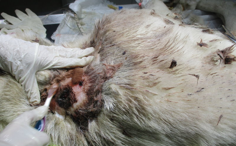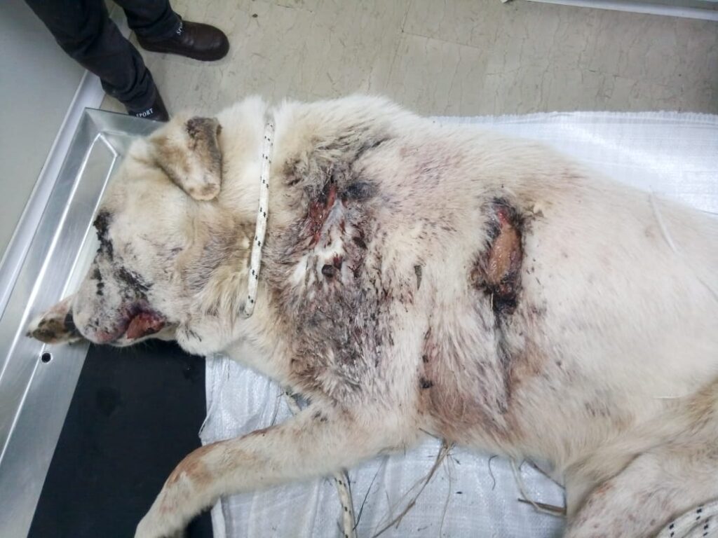 Ο σκύλος είχε μεταφερθεί σε πολύ άσχημη κατάσταση στο κτηνιατρείο του κ. Νίκου Κατσαντά και μετά από πολύωρο χειρουργείο του είχαν αφαιρεθεί από το σώμα και το πρόσωπό του τα σκάγια, τα οποία είχαν σαν αποτέλεσμα την καταστροφή δοντιών και γνάθου.