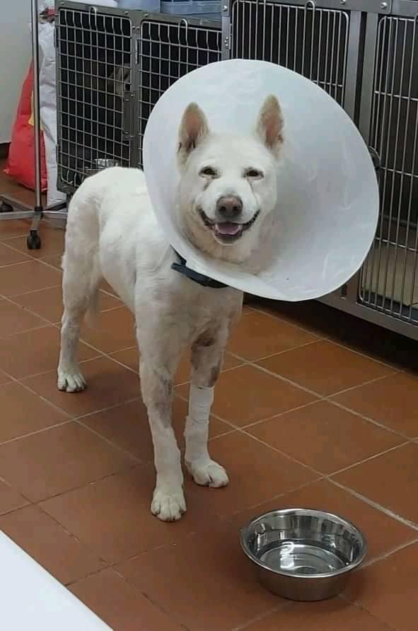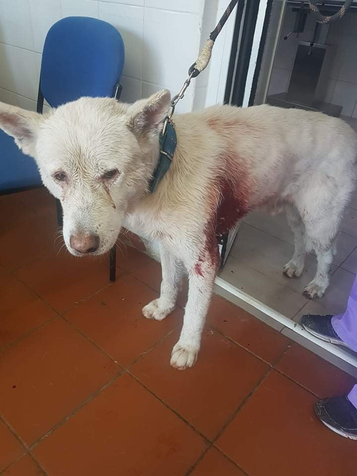 Ο σκυλάκος μαχαιρώθηκε από κάποιον, καθηγητή μάλιστα, όπως λέγεται, στο επάγγελμα, την ώρα που ένας άλλος τον χτυπούσε και εκείνος με σιδερένιο αντικείμενο. Στη συνέχεια και έχοντας χάσει πολύ αίμα, σε άσχημη κατάσταση, νοσηλεύτηκε στο ΔΙΚΕΠΑΖ (Διαδημοτικό Κέντρο Περίθαλψης Αδέσποτων Ζώων) στο Σχιστό Περάματος. Εκεί έμεινε 14 μέρες. Έδωσε σκληρή μάχη και την κέρδισε. Δίπλα του η κτηνιατρική ομάδα του ΔΙΚΕΑΖ που τον φρόντισε όλες αυτές τις μέρες και τον κράτησε στη ζωή.