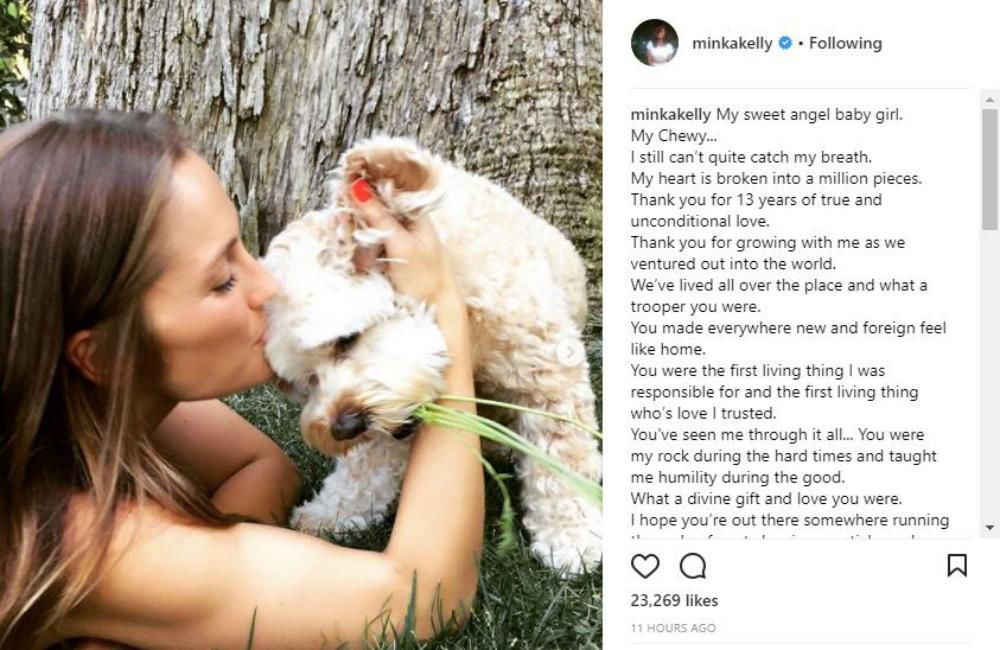Μια τρυφερή φωτογραφία από το αγαπημένο της σκυλάκι, την Chewy, που πέθανε αυτές τις μέρες δημοσίευσε η όμορφη Αμερικανίδα ηθοποιός Minka Kelly στην προσωπική της σελίδα στο Instagram γράφοντας μεταξύ άλλων: “Γλυκέ μου άγγελε. Η καρδιά μου έχει σπάσει σε εκατομμύρια κομμάτια. Ήσουν το πρώτο ζωντανό πλάσμα για το οποίο είχα ευθύνη και το πρώτο πλάσμα που εμπιστεύτηκα την αγάπη μου “.
