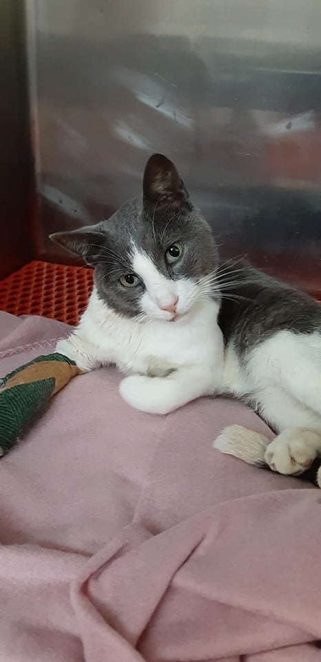 Αυτός είναι ο γατούλης που συγκίνησε πριν από μερικές μέρες πολύ κόσμο. Ο γατούλης αυτός χτυπήθηκε από αυτοκίνητο με αποτέλεσμα να πάθει ζημιά και να πρέπει να του αδειάζουν καθημερινά την κύστη.
