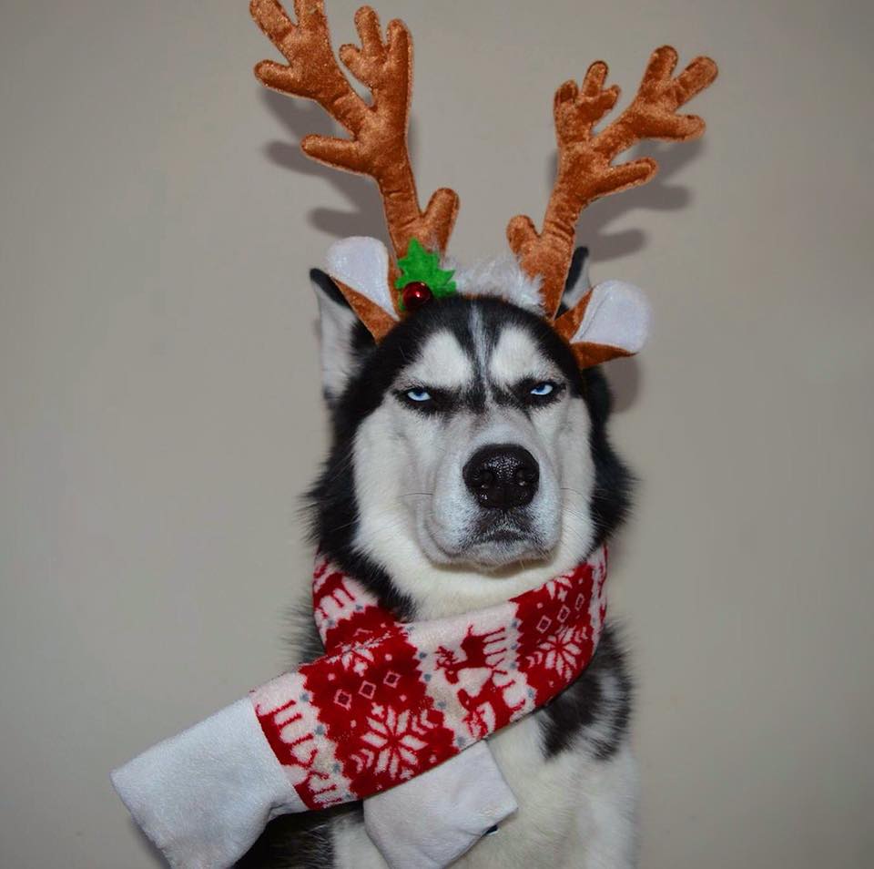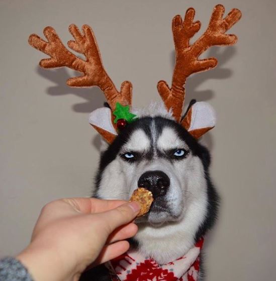 Ο Anuko είναι ένα πανέμορφο Χάσκι, το οποίο πριν από χρόνια είχε γίνει viral στα social media γιατί είχε το πιο θυμωμένο και βλοσυρό βλέμμα σκύλου. Τότε μάλιστα τον είχαν αποκαλέσει, επιτυχώς, Grumpy dog. Ο Anuko, για χάρη των θαυμαστών του, επέστρεψε και πάλι δριμύτερος. Η κοπέλα που τον έχει, η Jasmine Milton από τη Μεγάλη Βρετανία, η οποία ποτέ δεν είχε φανταστεί ότι θα προκαλέσει τόσο ενθουσιασμό το ύφος, τον βοήθησε να στολιστεί χριστουγεννιάτικα ώστε να τον απολαύσουν ακόμα μια φορά οι χιλιάδες fans του σε όλον τον κόσμο.