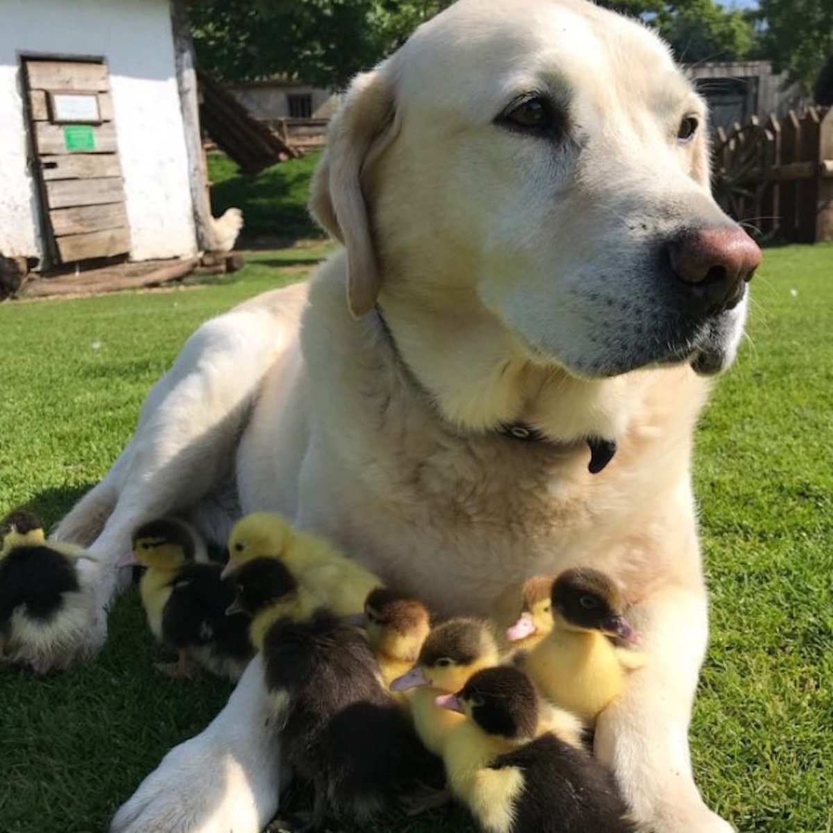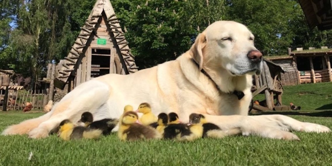 Πατέρα φαίνεται ότι αποκαλούν έναν σκύλο, ράτσας Larbador retriever, 9 νεογέννητα παπάκια, τα οποία λίγες μέρες μετά τη γέννησή τους έχασαν τη μητέρα τους. Ο σκύλος λέγεται Fred, είναι 10 ετών και ζει κοντά στο αεροδρόμιο Stanstet Airport του Σάσεξ στη Μεγάλη Βρετανία.