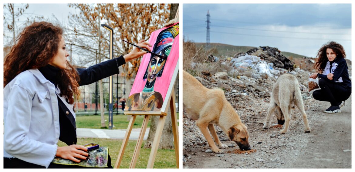 Η 24χρονη ζωγράφος Seyma Kayan, η οποία ζει στο Ικόνιο είναι μια από αυτούς. Η Seyma αγαπάει και φροντίζει τα ζώα σε μόνιμη βάση. Η ζωγραφική είναι η μεγάλη της αγάπη, με την οποία ασχολείται από την παιδική ηλικία. Αυτό όμως που την ξεχωρίζει από τους άλλους ζωγράφους και καλλιτέχνες είναι ότι έχει αφιερωθεί εντελώς στα αδέσποτα ζώα και τη φροντίδα τους.
