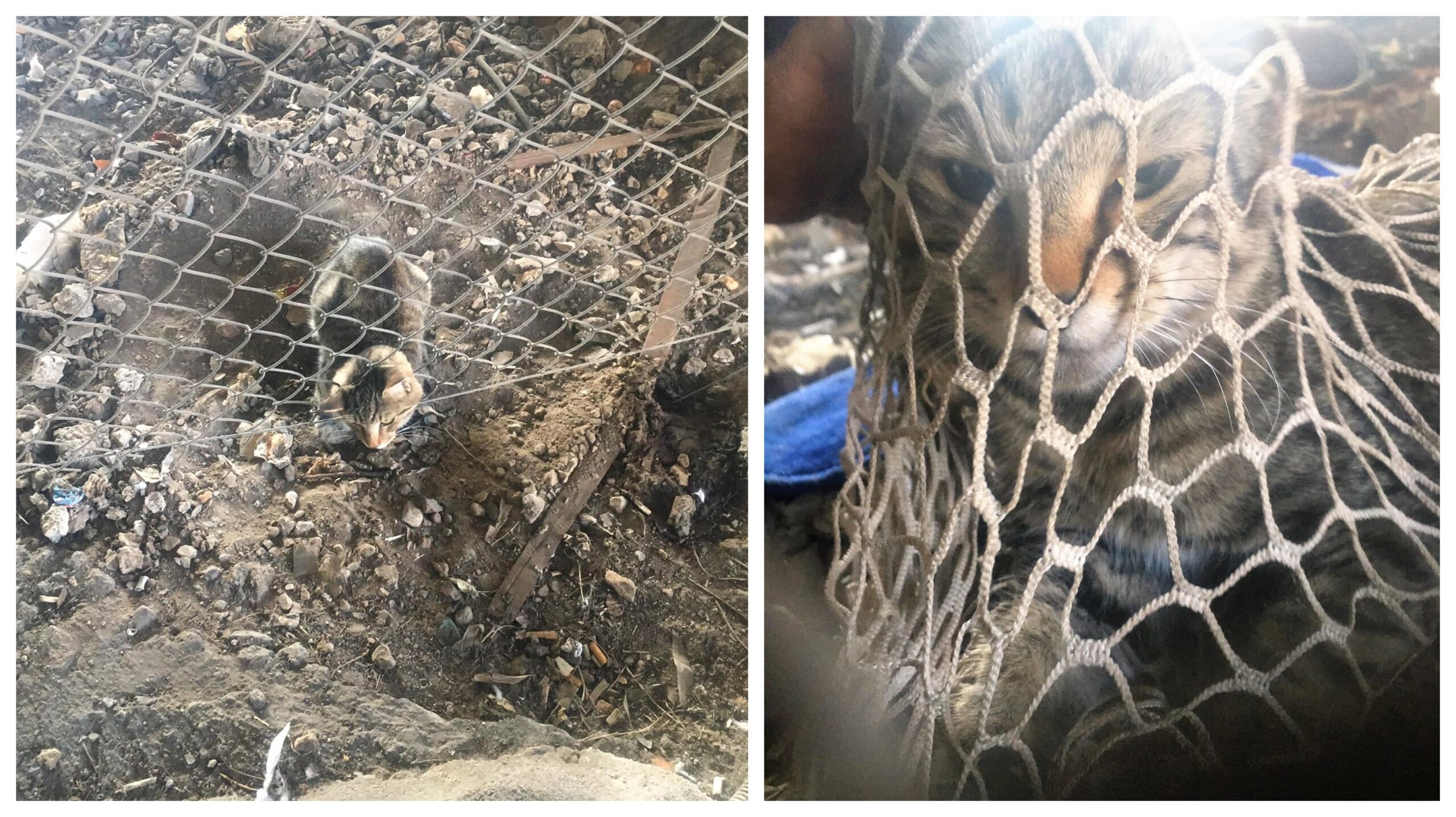 Τρεις μέρες εγκλωβισμένος με το κεφαλάκι του σφηνωμένο στο συρματόπλεγμα, ένας γατούλης παρέμενε αβοήθητος και πολύ φοβισμένος. Είχε βάλει εκεί το κεφάλι του και ήταν αδύνατον να το βγάλει. Χωρίς νερό και φαγητό. Τον έβλεπαν και δεν έκαναν τίποτα. Κλασικά πράγματα. Η αδιαφορία του κόσμου σε όλο της το μεγαλείο.
