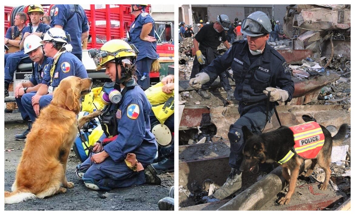 Μέσα σε αυτές τις ομάδες διάσωσης, ξεχωριστό ρόλο είχαν οι 300 K9 rescuers, ομάδες διασωστών δηλαδή με ειδικά εκπαιδευμένους σκύλους εντοπισμού και αναγνώρισης. Οι σκύλοι αυτοί είναι οι αφανείς ήρωες εκείνων των ημερών που με τόλμη και απίστευτο θάρρος μπήκαν στη μάχη του εντοπισμού ανθρώπων στα συντρίμμια. Και έσωσαν πολλούς ανθρώπους δουλεύοντας ακούραστα μέρα και νύχτα.