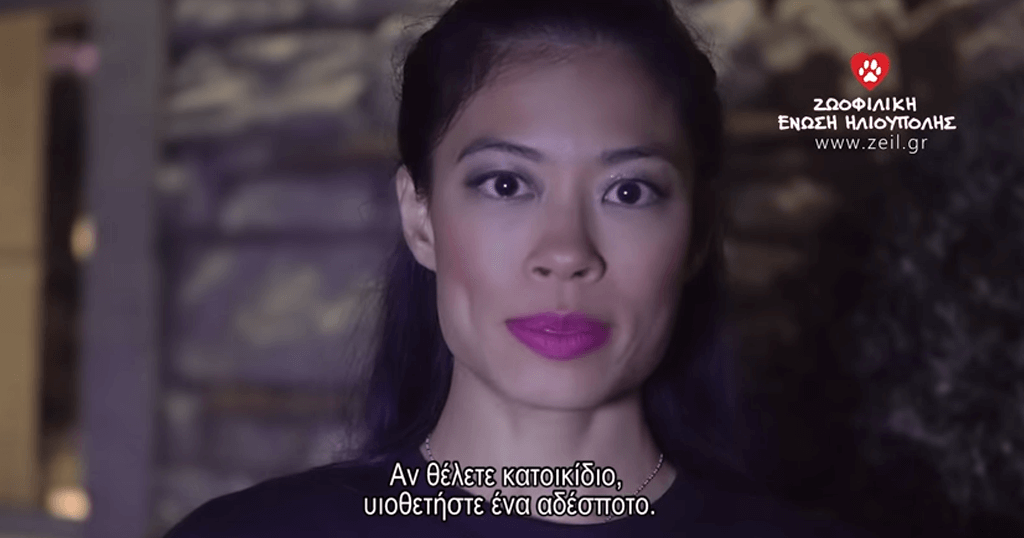 Αυτή τη φορά η 39χρονη Βρετανίδα, σιγκαπουριανής καταγωγής, στέλνει στο ελληνικό κοινό μήνυμα για τη φροντίδα των αδέσποτων, κρούει τον κώδωνα για την κακοποίηση των ζώων στη χώρα μας και υπογραμμίζει τη σημασία της στείρωσης.