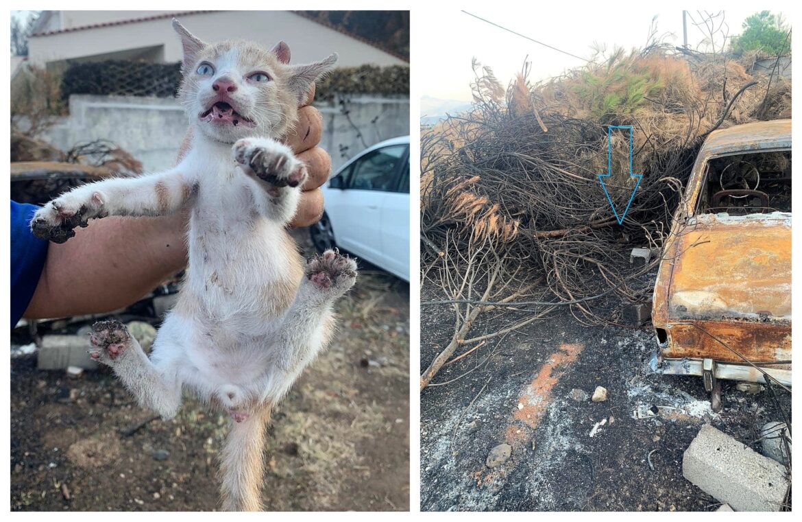 Έτσι, πριν από λίγες μέρες, η ομάδα έλαβε έκκληση για την παγίδευση μωρού γατιού στο Αχλάδι, στη Βόρεια Εύβοια, το οποίο είχε κάψει τις πατούσες του στις πρόσφατες πυρκαγιές. Δυστυχώς με την εκκένωση σε εξέλιξη δεν έγινε άμεσα αντιληπτό από τους κατοίκους εκεί κι έτσι το γατάκι βασανίστηκε για μέρες πατώντας με ανοιχτές πληγές κι εγκαύματα πάνω σε στάχτες και καμένη γη…