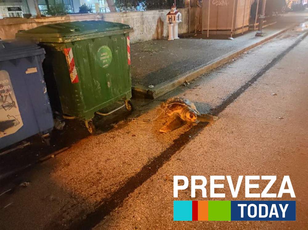 Μια νεκρή θαλάσσια χελώνα εντοπίστηκε αυτές τις μέρες δίπλα σε κάδους σκουπιδιών στην παραλιακή στην Πρέβεζα.